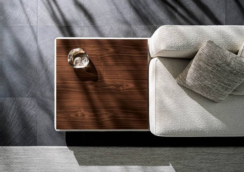 Horizonte est le résultat d'une vision architecturale claire : un trait déterminé, surélevé de sept centimètres du sol grâce à une plinthe en métal peint en noir mat, qui donne au canapé une sensation de suspension particulière. Une plateforme sur laquelle se placent les éléments rembourrés - sièges, dossiers et accoudoirs - tous conçus comme de grands coussins aux proportions bien marquées et à la forte personnalité.