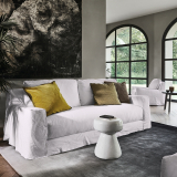 Edité par Gervasoni, Loll est un canapé généreux qui exprime une idée du confort contemporain et se distingue par des détails soignés, la qualité des matériaux et un travail artisanal unique. Le profil de Loll 12 est souligné par le point de surjet qui, comme un trait léger dessiné à la main, suit les géométries essentielles et les lignes fluides du canapé. La structure est en bois massif et comporte une coque en mousse de polyuréthane. L’assise et le dossier sont formés de larges coussins réalisés avec une couche moelleuse de duvet d’oie cloisonné. Pour l’assise, la technique traditionnelle de ressorts ensachés a été remise à l’honneur pour un confort accru. Le canapé Loll Gervasoni se déhousse entièrement avec facilité.