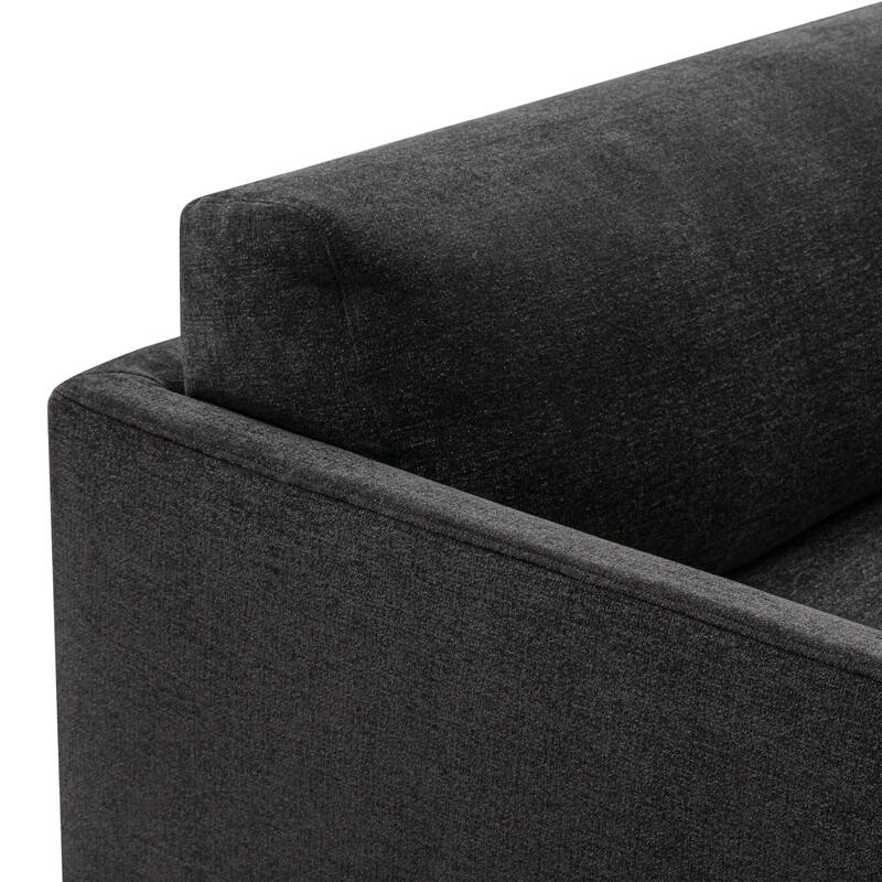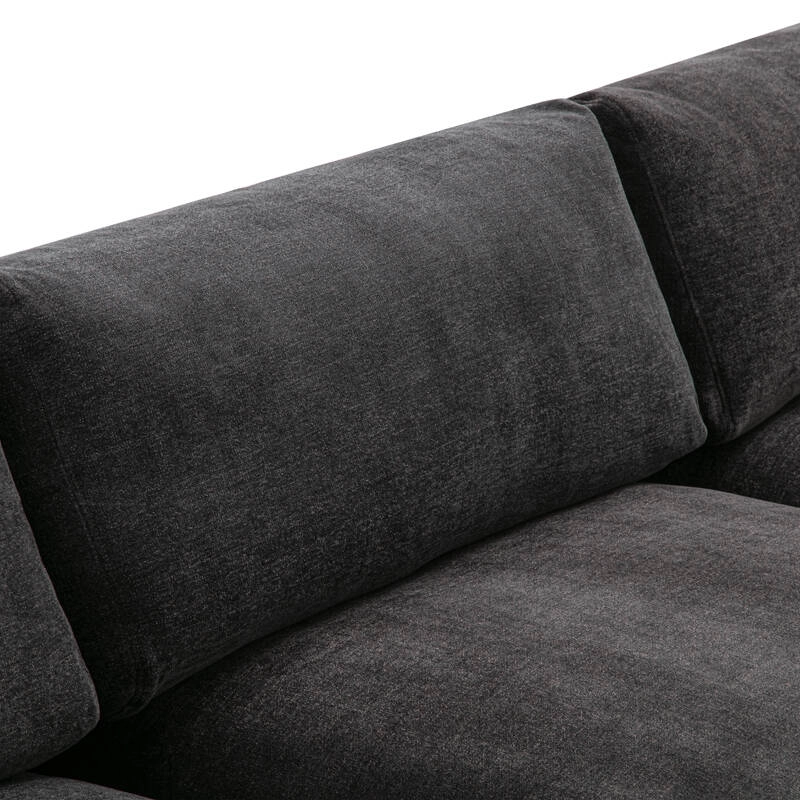 revêtement déhoussable tissu, pieds acier finition époxy noir, rembourrage mousse polyuréthane, duvet, plumes et balles de fibres, coussins de dossier plumes et duvet