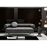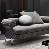 Minotti. La coque externe soigneusement profilée accueille l’assise en s’ouvrant en corolle pour recevoir l’élément à rouleau particulièrement original du dossier. Les solutions formelles aux accents sculpturaux ainsi que l’équilibre entre la structure rigide et le volume suspendu donnent naissance à une série de sièges dont la beauté conjugue douceur et confort.