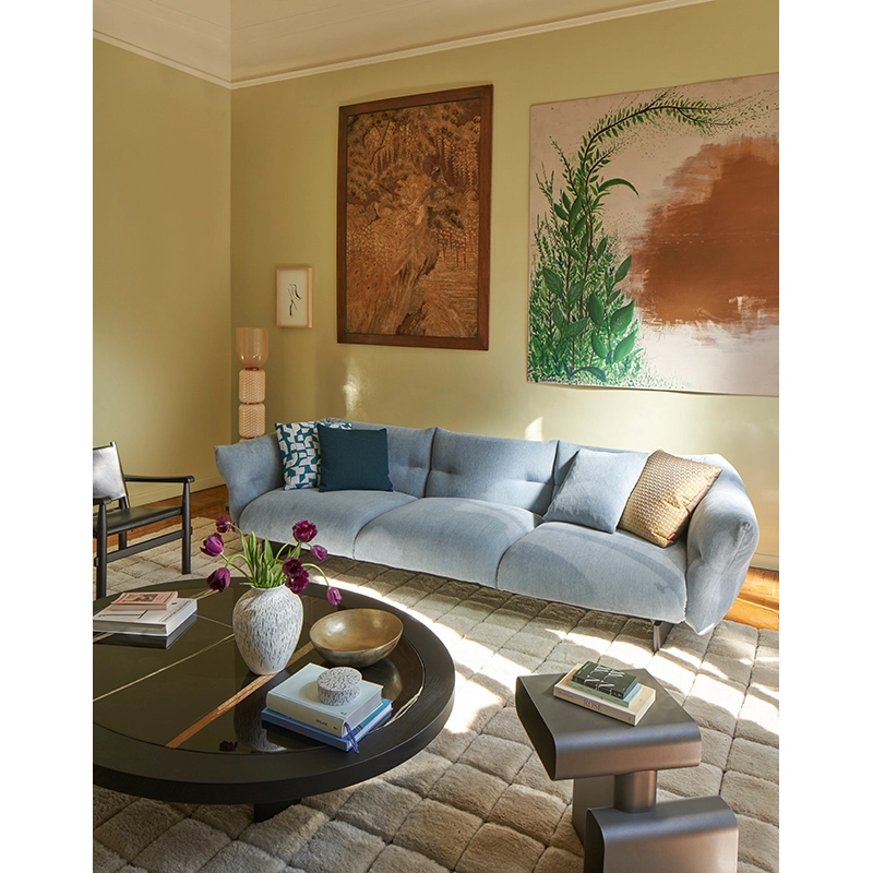 Conçu par la designer Patricia Urquiola pour Cassina, Moncloud est un canapé à la fois élégant et confortable. Le canapé Moncloud a été créé avec comme objectif de repenser le design des meubles rembourrés dans une perspective circulaire. La structure en bois élève du sol les parties rembourrées, conférant à l'ensemble du canapé la légèreté et la douceur d'un nuage. Le revêtement en tissu enveloppe les volumes du canapé Moncloud, créant un pli distinctif qui met en valeur la beauté de sa silhouette. Les coussins du dossier, en revanche, sont définis par des coutures centrales qui confèrent à chaque module une signature esthétique unique et sophistiquée.