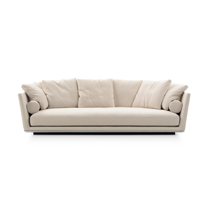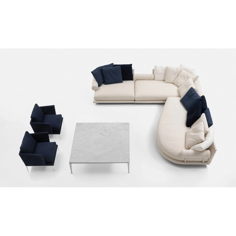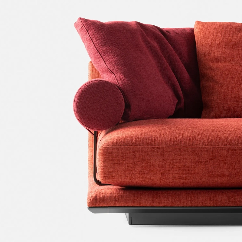 conçue par Antonio Citterio pour la marque B&B Italia, Noonu est un système de canapés qui permet de multiples compositions. Reprenant le nom d'un atoll des Maldives, Noonu est conçu comme un espace de pure relaxation. La collection Noonu associe des proportions généreuses à une grande flexibilité. La structure porteuse en retrait de l’assise est peu visible, ce qui donne l’impression que le canapé flotte au-dessus du sol. Les sièges sont profonds, dotés d’un grand coussin d’assise en une pièce, garantissant un confort extrême. Le dossier incliné a été conçu pour accueillir les coussins, qui peuvent être arrangés de différentes manières. Un accoudoir cylindrique, lié à la structure en aluminium par une sangle sophistiquée, peut être utilisé comme accoudoir ou repose-tête. Il peut être placé entre les sièges ou retiré complètement selon l’utilisation du canapé. La canapé Noonu comprend quatre éléments de base : en plus des éléments carrés et rectangulaire, B&B Italia propose un module « piano » qui crée une courbe accueillante au niveau du dossier, et un module « voile », qui fournit un volume arrondi généreux sur le devant. Disponible dans une grande variété de tissus ou cuir, le canapé Noonu se plaira parfaitement dans vos salons.