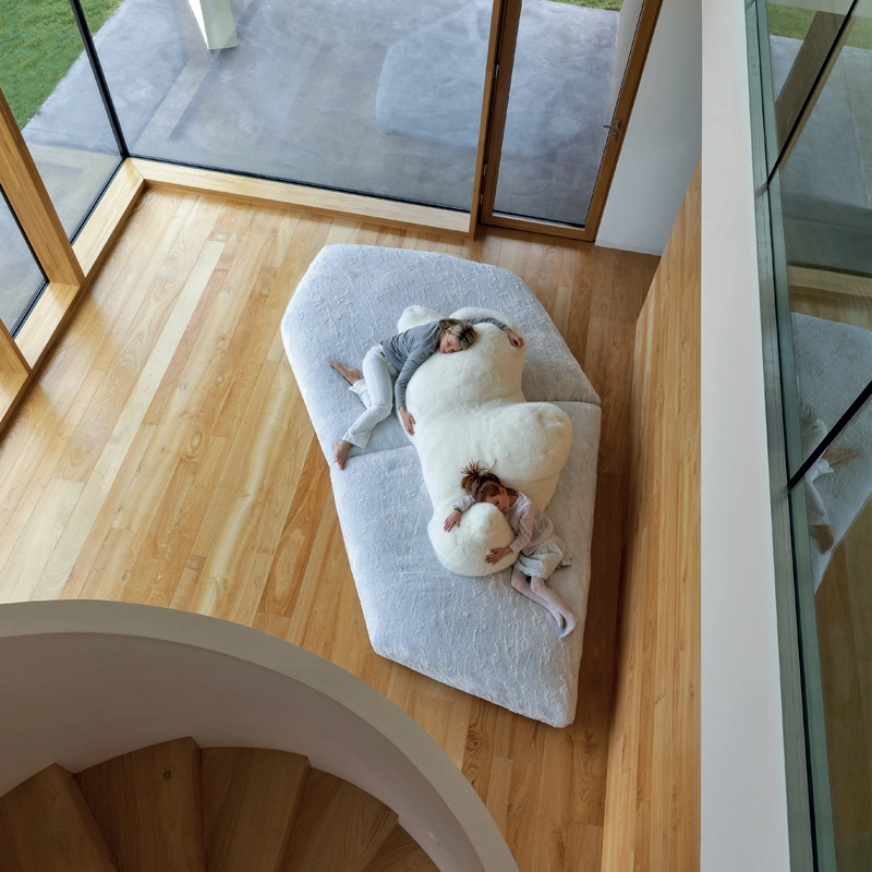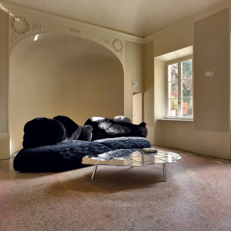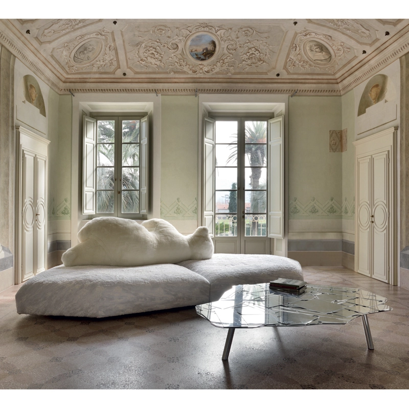 Dessiné par Francesco Binfaré pour Edra, cet impressionnant canapé évoque une banquise sur laquelle un ours est allongé sur le côté. La base est rembourrée en Gellyfoam et plumes, revêtue d'un tissu spécial avec une texture semblable à des couches de glace. L’ours, revêtu de fourrure écologique, est un dossier mobile, lesté et équipé d’une base en cuir à l’envers comme antidérapant. Avec son assise irrégulière et son dossier original amovible, Pack permet toutes les positions, de l’assise la plus formelle à une position de relaxation totale. Véritable invitation à la détente, ce canapé Edra s’intègre dans tous les styles d’espaces, classique ou contemporain.