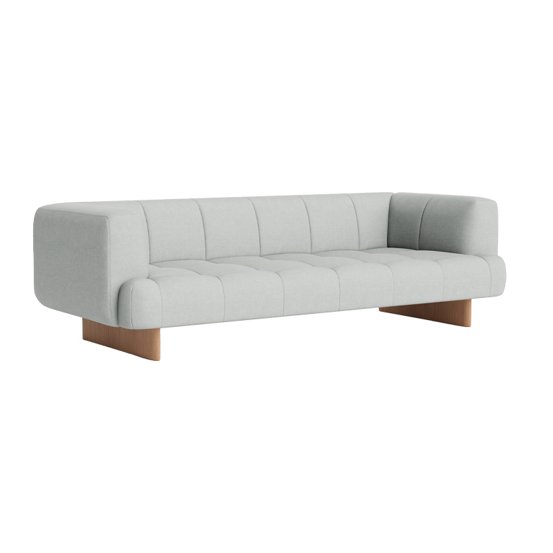 Décrit par les designers Doshi Levien comme un « système de canapé paysage matelassé », le canapé Quilton Lift 3 places édité par Hay se présente comme une plateforme centrale pour vivre, travailler, socialiser et se détendre. Le modèle Quilton Lift associe les dimensions généreuses et les formes sculptées de la série à des pieds en bois massif, qui soulèvent élégamment le canapé pour lui donner une allure légère et contemporaine. Le matelassage finement détaillé enveloppe la douceur et le volume des sièges en mousse et ouate, offrant un confort exceptionnel. Disponible en versions deux ou trois places, avec de nombreuses options de revêtement et des pieds en différents types de bois, l’esthétique accueillante et la polyvalence du Quilton Lift 3 places en font une pièce idéale pour une variété d’espaces domestiques et publics.