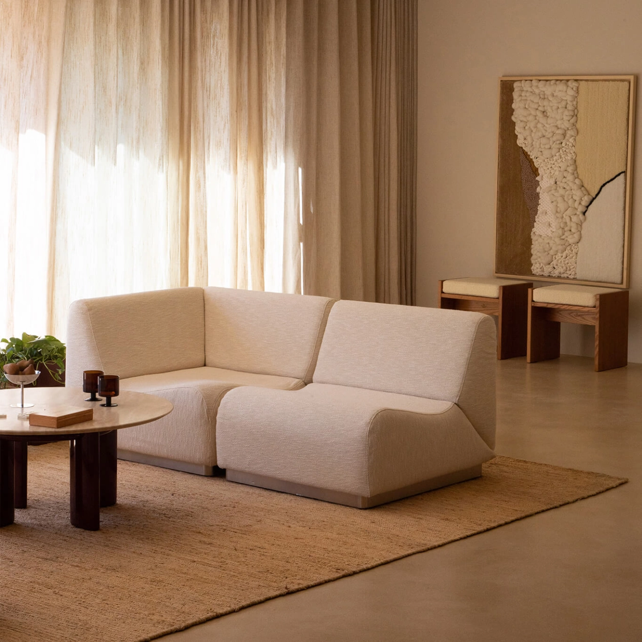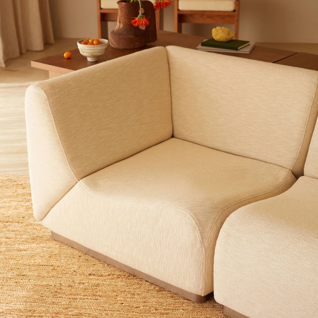 ROTONDO Module d'angle Tissu Tramé Crème
