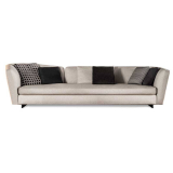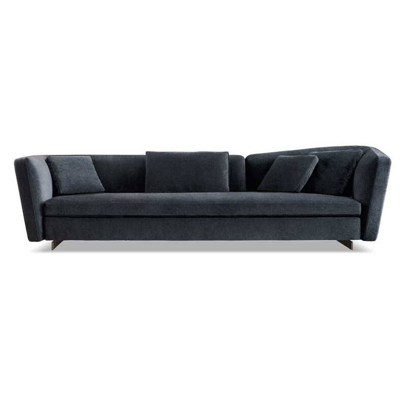 Minotti, repose sur d’élégantes barres longitudinales en aluminium peint couleur Bronze qui allègent les volumes tout en les soulevant du sol.