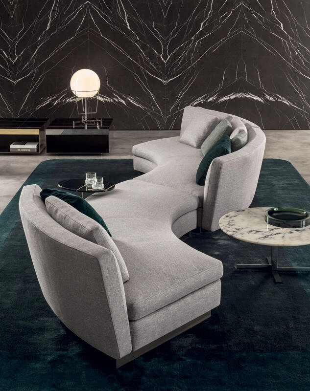 Seymour se distingue par son accueil moelleux et son élégance sensuelle, qui s'inspire d’architectures dynamiques et sinueuses. La collection permet de réaliser à la fois des canapés fixes et des compositions linéaires ou d’angle, répondant respectivement à des interprétations classiques ou plus contemporaines du séjour. Les éléments courbes soulignent les lignes souples et sinueuses de