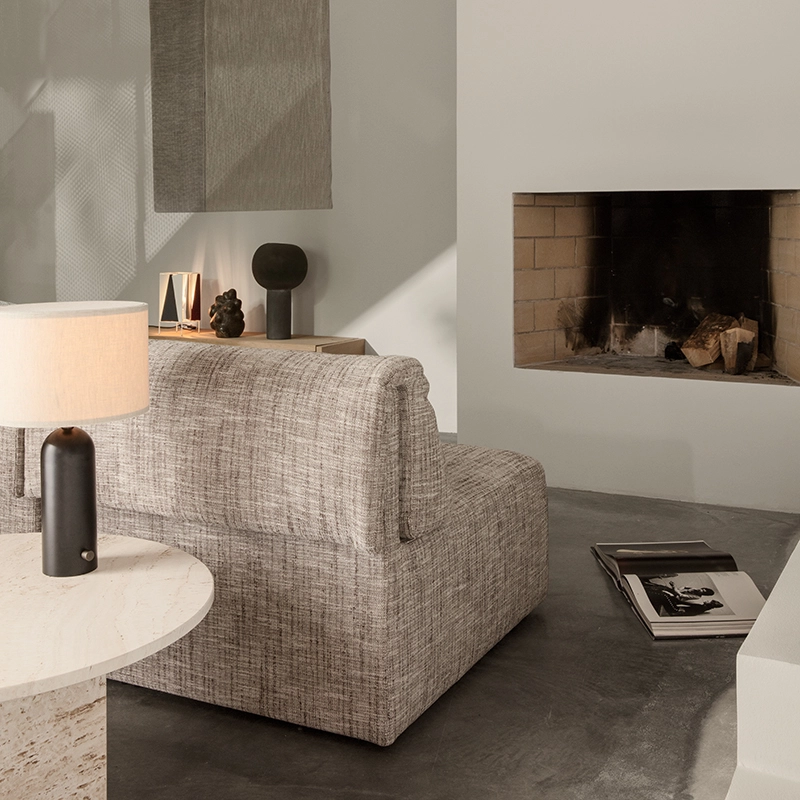Dessiné par Space Copenhagen pour Gubi, le canapé Wonder est une réinterprétation contemporaine du mobilier de salon des années 1970. Les designers ont actualisé le caractère informel, généreux et ludique du canapé modulaire original avec un cadre élégant et simple. Le canapé Wonder de Gubi apporte une ambiance détendue et cosy dans un hôtel ou un hall d'entrée, ou une touche de sophistication dans une résidence privée. Les combinaisons infinies des 3 modules du canapé Wonder lui permettent de s'adapter aux besoins changeants des utilisateurs. En tant que pièce indépendante, en groupe, dos à dos, côte à côte ou en rangée, le canapé Wonder séduit par son design distinctif sous tous les angles. Les coussins du canapé Wonder se rabattent doucement sur les lignes carrées et épurées du dossier et sont fixés par des aimants cachés. Ce détail adoucit la relation entre l'avant et l'arrière du canapé et apporte à la fois confort et sophistication.