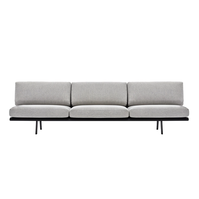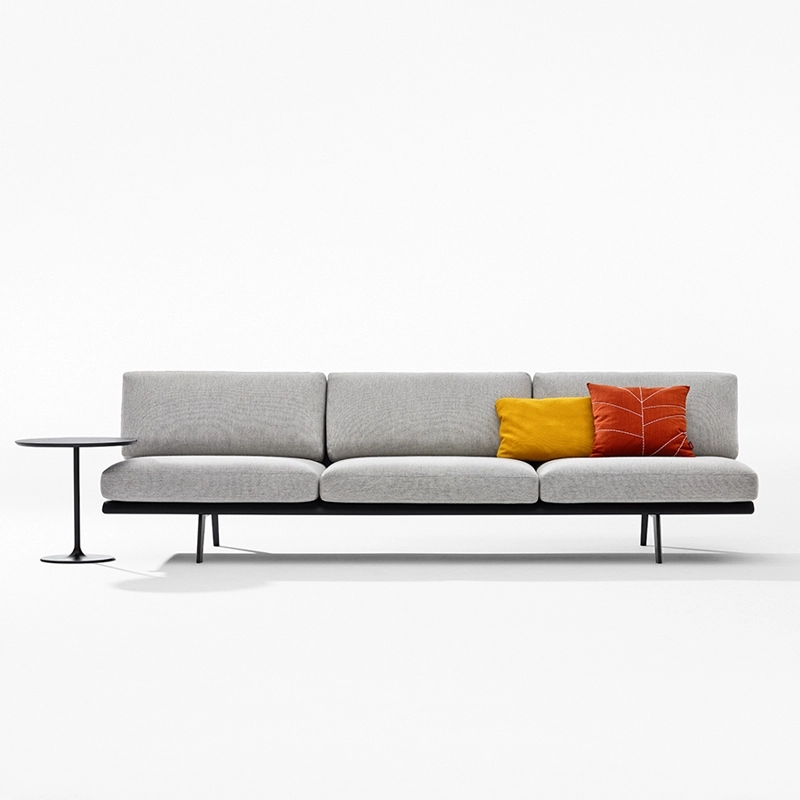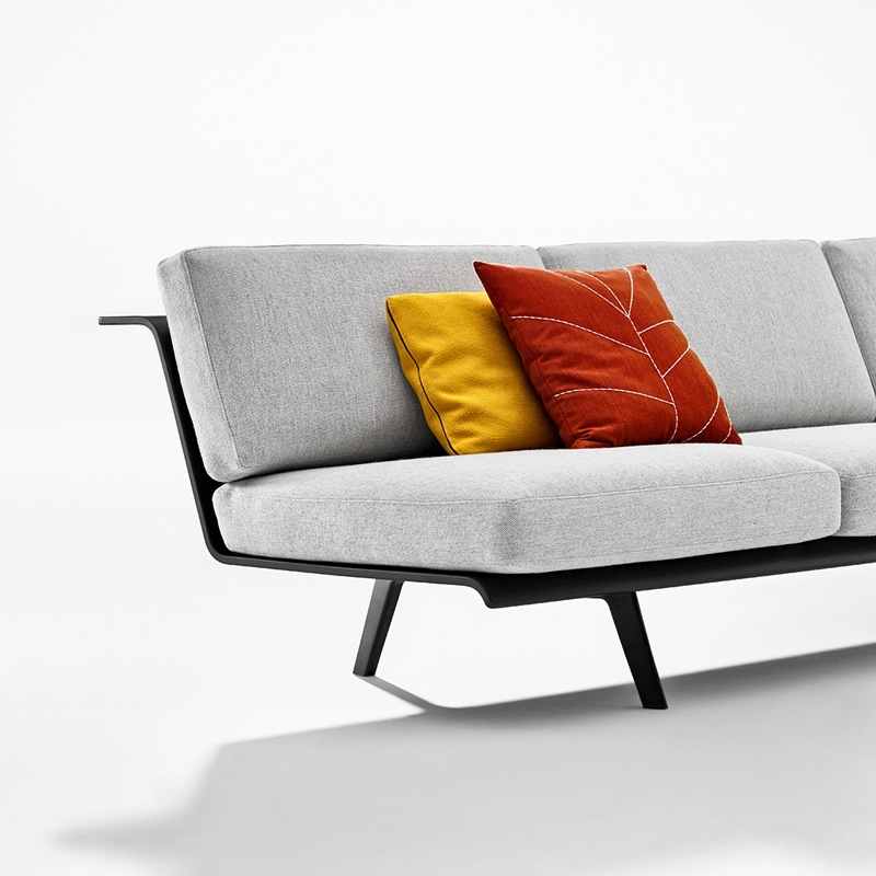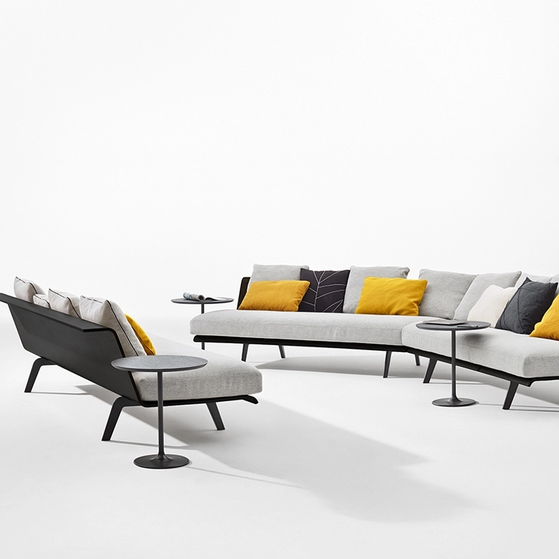 Zinta est un canapé graphique aux lignes douces, qui convient à tous types d’espaces. Créé par le studio Lievore Altherr Molina pour la marque Arper, il est composé de six coussins moelleux qui reposent sur une coque en multiplis de bois et des pieds fins en aluminium. La particularité de ce canapé réside dans le dossier dont la courbe crée une petite tablette, discrète et chic. Cette banquette à la silhouette essentielle s’intègre aussi bien dans un salon que dans un espace bureau.