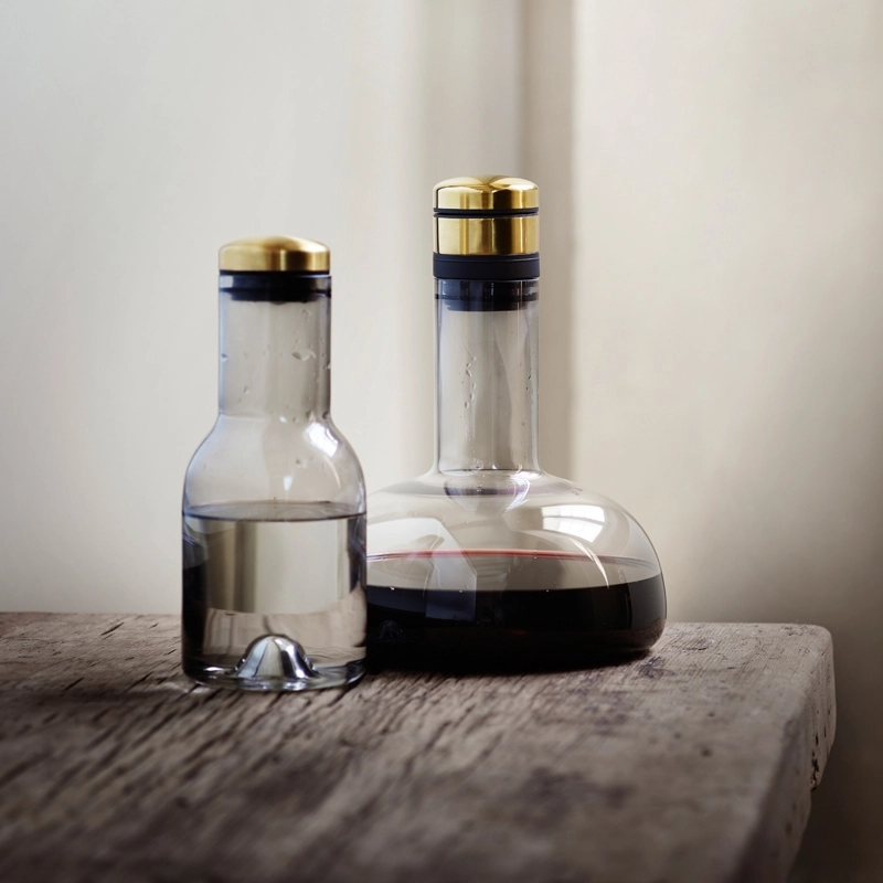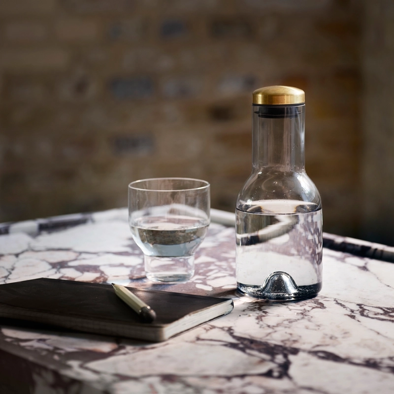 La série Bottles, conçue par Norm Architects pour Menu, trouve la beauté dans les choses simples, des silhouettes minimalistes et une fonctionnalité élevée. Disponibles en deux tailles, les carafes se déclinent en verre transparent pour une table intemporelle ou en verre fumé pour une ambiance plus moderne. Avec leur bouchon en laiton, les Bottles Menu apportent de la joie et de l'élégance à table.