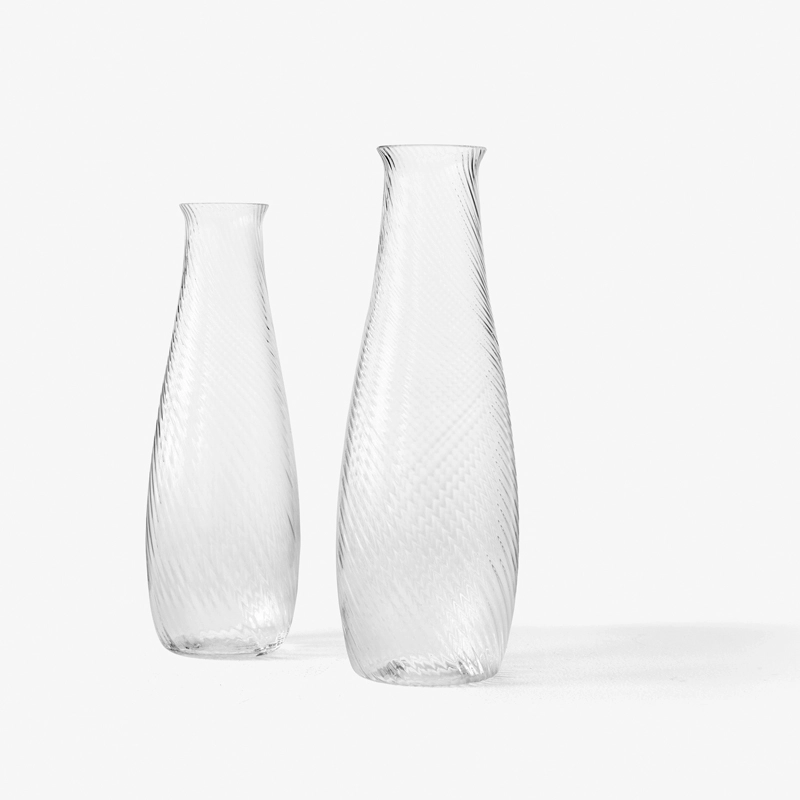 D'apparence simple et résolument moderne, cette carafe présente un subtil motif qui reflète la nature tourbillonnante de l'eau. Disponible en deux tailles, elle fait partie de Collect, une collection de tissus d'ameublement et d'objets de maison magnifiquement conçus par Space Copenhagen pour And Tradition. Des sets de verre assortis sont également disponible.