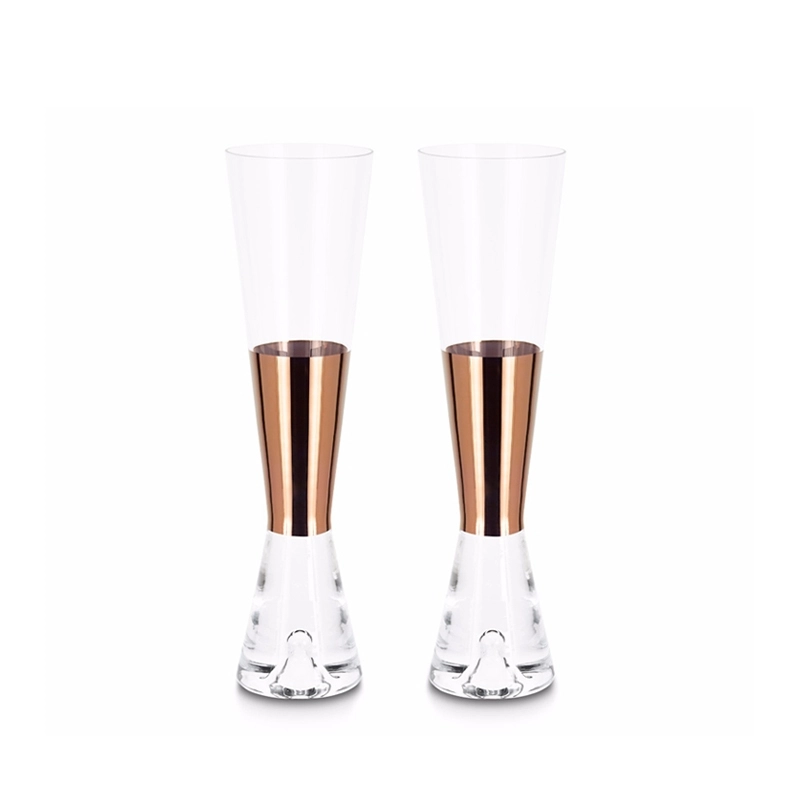 Créée par Tom Dixon, Tank est une collection d'accessoires pour la table qui allie parfaitement esthétique contemporaine et techniques traditionnelles. Les verres à champagne Tank sont réalisés en verre soufflé à la bouche et les détails cuivrés sont peints à la main. Pour les fêtes, ce set de deux flûtes possède une élégance intemporelle, tout en se démarquant des verres classiques.