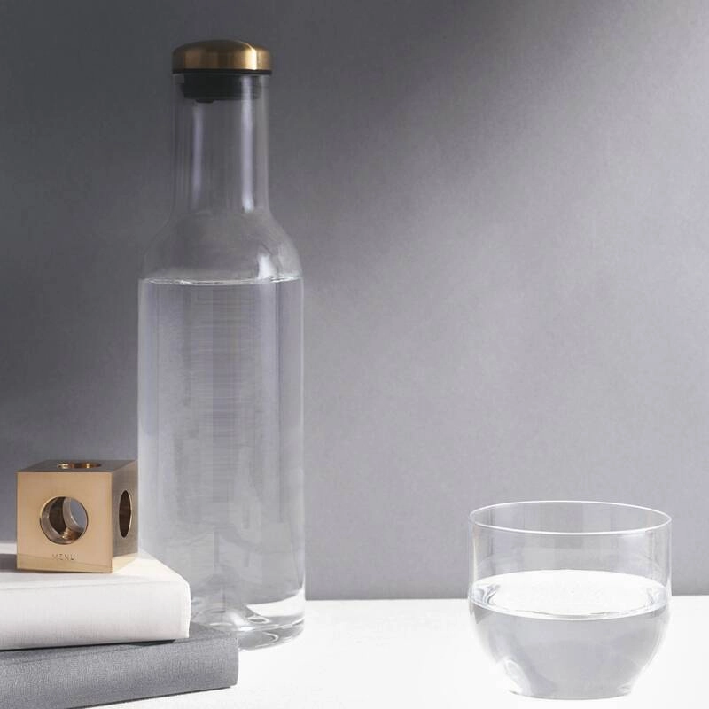 La série Bottles, conçue par Norm Architects pour Menu, trouve la beauté dans les choses simples, des silhouettes minimalistes et une fonctionnalité élevée. Disponibles en deux tailles, les carafes se déclinent en verre transparent pour une table intemporelle ou en verre fumé pour une ambiance plus moderne. Avec leur bouchon en laiton, les Bottles Menu apportent de la joie et de l'élégance à table.