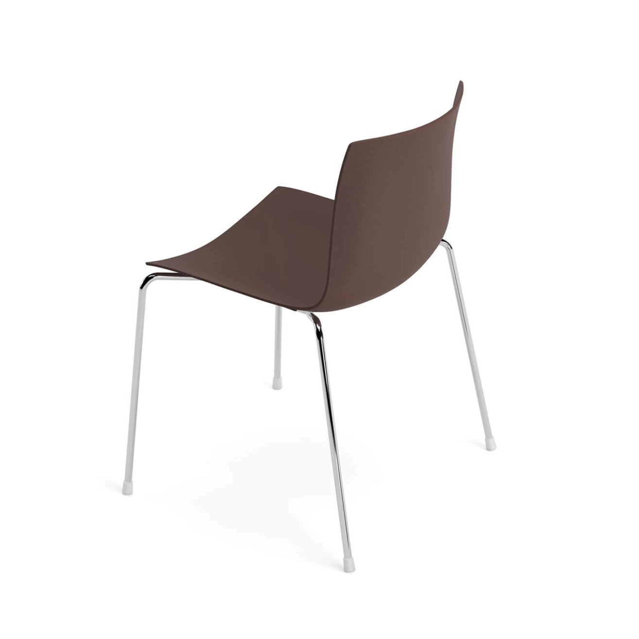Pieds acier chromé ou laqué, coque en polypropylène avec texture au dos, réalisée à partir de matériaux recyclés post-consommation mélangés à des matériaux post-industriels