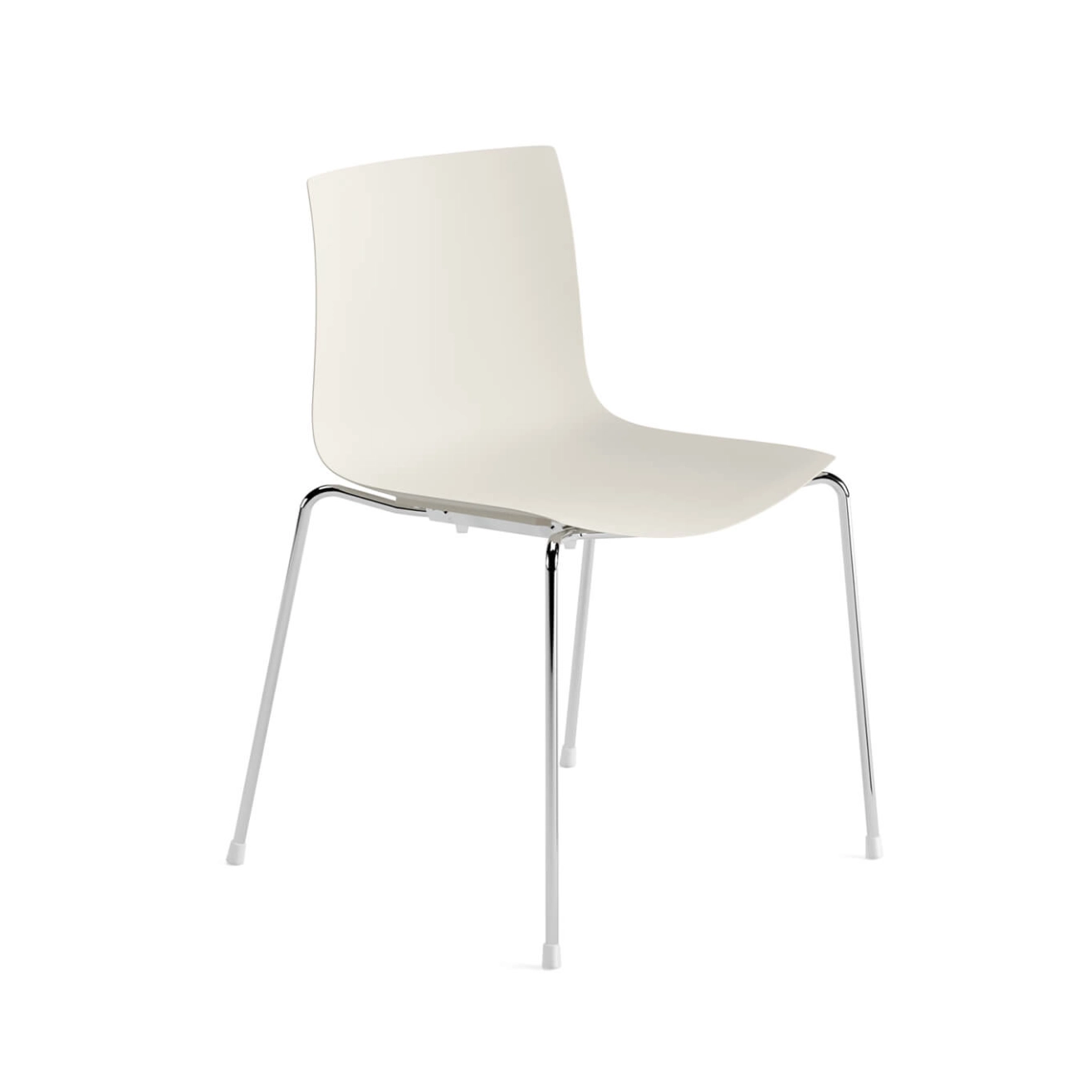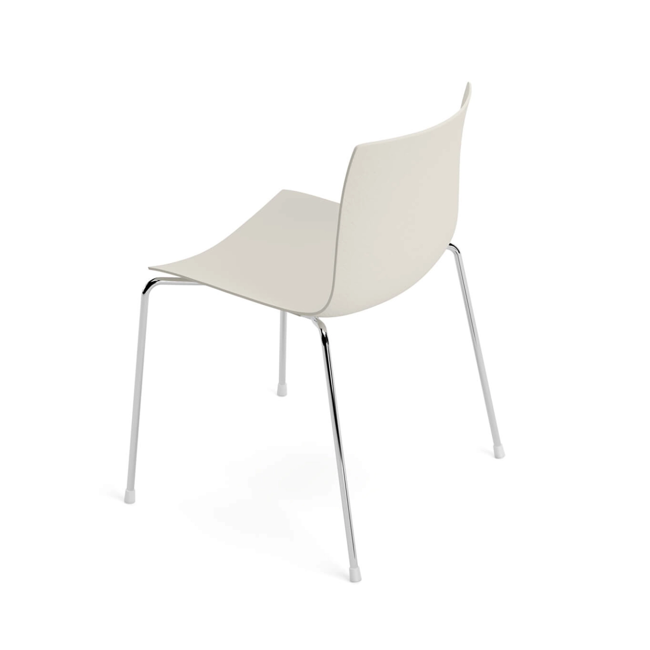 Pieds acier chromé ou laqué, coque en polypropylène avec texture au dos, réalisée à partir de matériaux recyclés post-consommation mélangés à des matériaux post-industriels