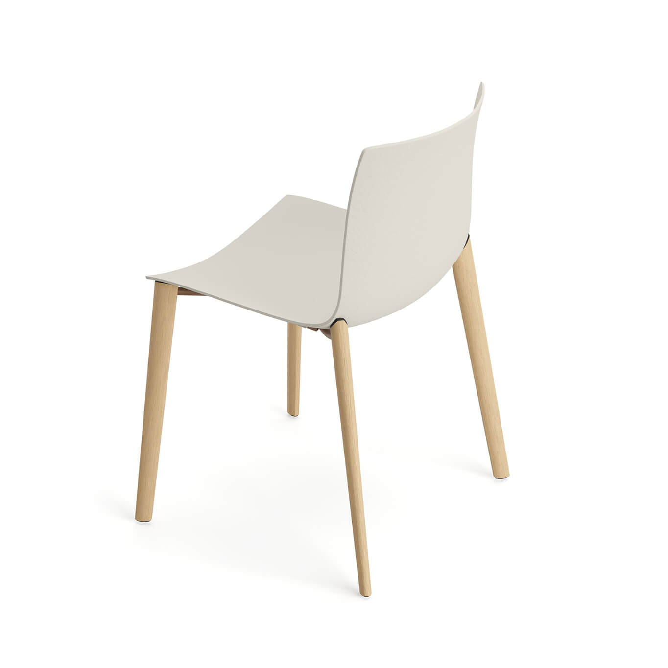 Coque en polypropylène avec texture au dos, réalisée à partir de matériaux recyclés post-consommation mélangés à des matériaux post-industriels, pieds chêne massif