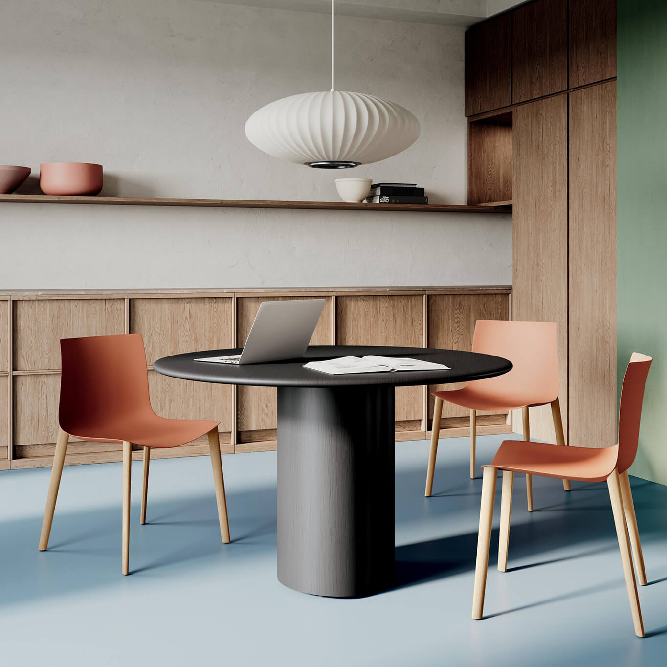 Catifa 46 est une pierre angulaire de l'identité d'Arper – une icône durable qui a introduit un nouveau langage dans le monde du design dès ses débuts. Ses dernières évolutions reflètent sa capacité à s'adapter en permanence aux besoins changeants. Aujourd'hui, Catifa 46 est réinterprétée avec une coque fabriquée à partir de plastique 100 % recyclé, provenant d'un mélange de déchets post-consommation et post-industriels. Avec ce nouveau matériau, une texture et une palette de couleurs fraîches font leur apparition, inspirées de l'architecture durable : des matériaux exposés, authentiques et naturellement texturés, qui apportent de la profondeur et de la chaleur à la coque. Plus qu'un simple aspect visuel, l'expérience est également tactile. À l'arrière de la coque, des nuances se fondent avec une texture unique qui rappelle l'innovation bicolore ayant initialement défini Catifa, ajoutant ainsi encore plus de caractère et d'identité à Catifa (RE) 46.