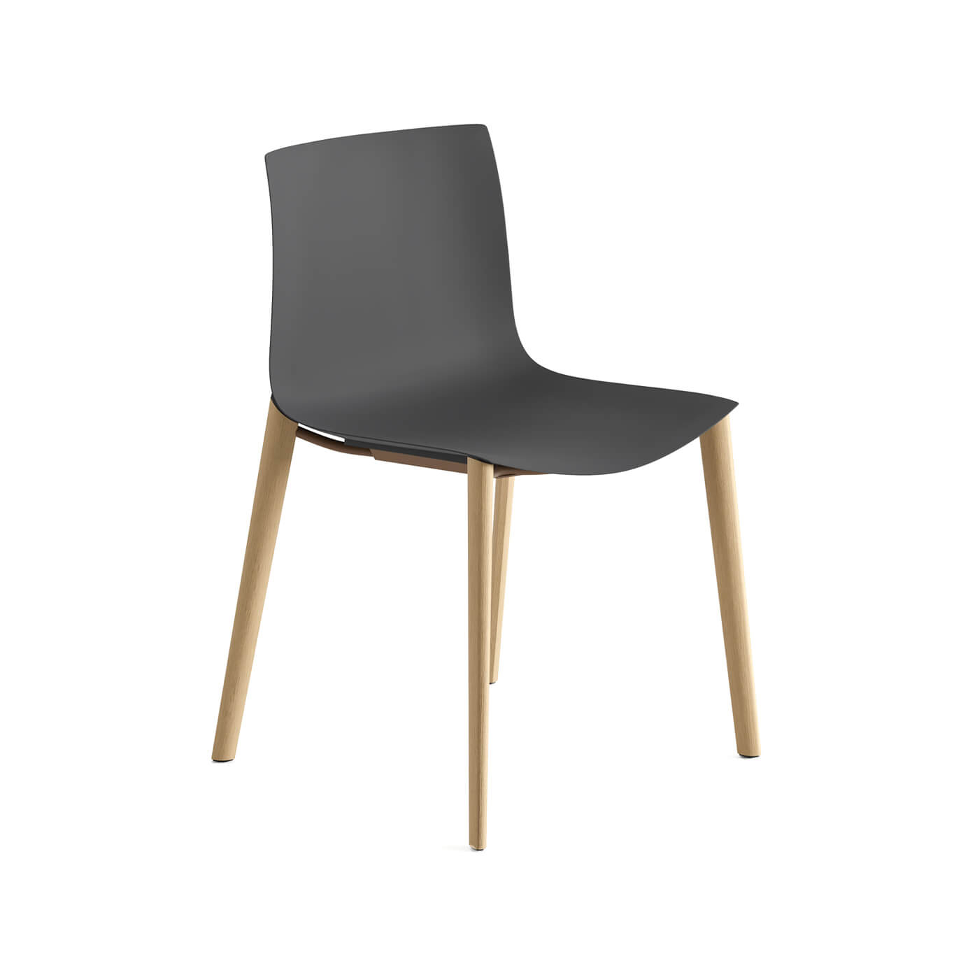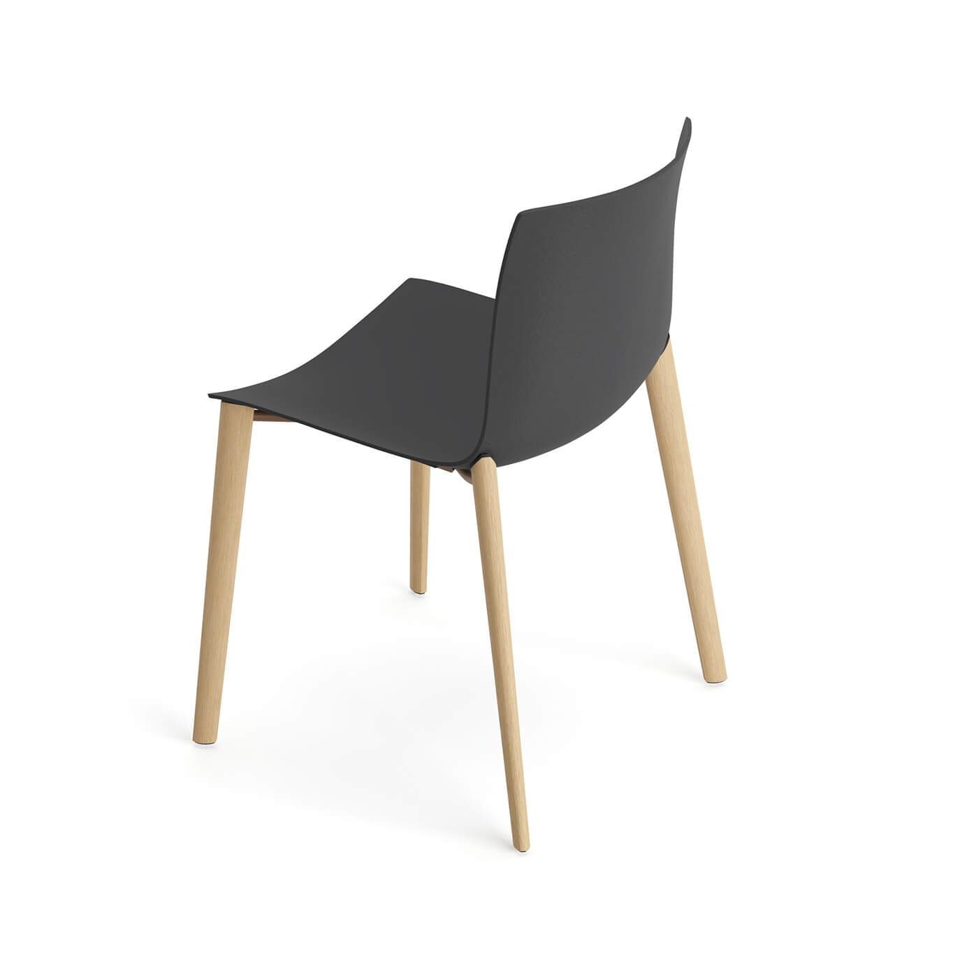 Coque en polypropylène avec texture au dos, réalisée à partir de matériaux recyclés post-consommation mélangés à des matériaux post-industriels, pieds chêne massif