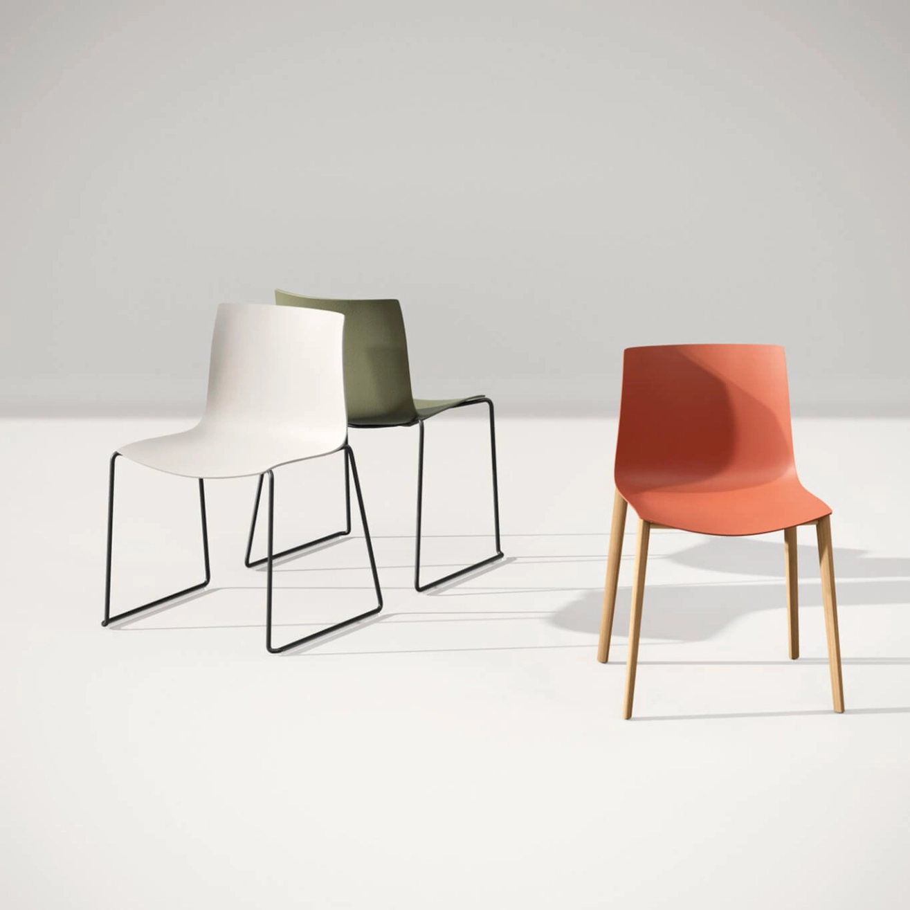 Catifa 46 est une pierre angulaire de l'identité d'Arper – une icône durable qui a introduit un nouveau langage dans le monde du design dès ses débuts. Ses dernières évolutions reflètent sa capacité à s'adapter en permanence aux besoins changeants. Aujourd'hui, Catifa 46 est réinterprétée avec une coque fabriquée à partir de plastique 100 % recyclé, provenant d'un mélange de déchets post-consommation et post-industriels. Avec ce nouveau matériau, une texture et une palette de couleurs fraîches font leur apparition, inspirées de l'architecture durable : des matériaux exposés, authentiques et naturellement texturés, qui apportent de la profondeur et de la chaleur à la coque. Plus qu'un simple aspect visuel, l'expérience est également tactile. À l'arrière de la coque, des nuances se fondent avec une texture unique qui rappelle l'innovation bicolore ayant initialement défini Catifa, ajoutant ainsi encore plus de caractère et d'identité à Catifa (RE) 46.
