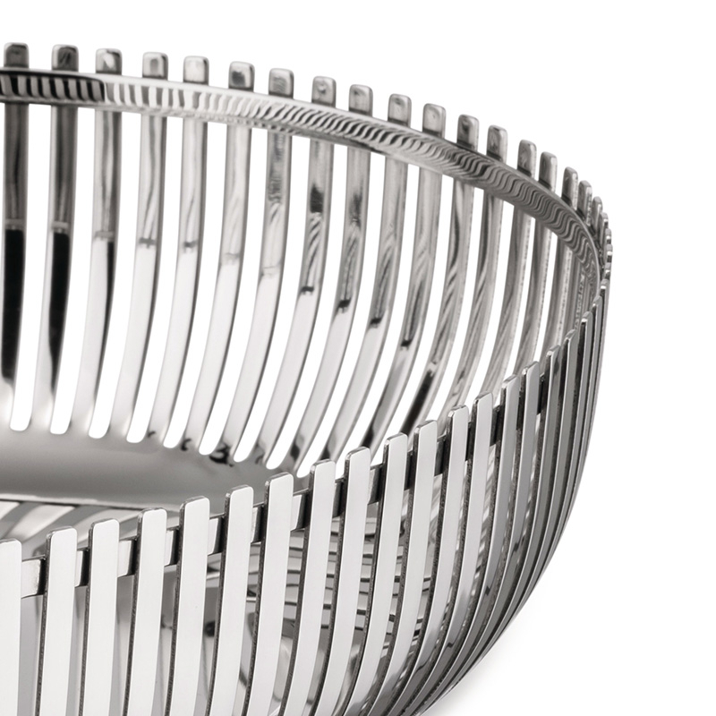 Pierre Charpin, une des figures majeures du design contemporain français, a dessiné pour Alessi la corbeille PCH06/26 en acier inoxydable 18/10. Elle s'inscrit dans la collection de corbeilles raffinées qui s'inspire des plateaux dans les galeries du XVIIIe et XIXe siècle pour les réinterpréter dans une version plus contemporaine. Cet accessoire de cuisine de notre quotidien est ici présenté sous une forme sobre, au design classique et élégant pour prendre place dans votre cuisine ou sur une table de salle à manger.