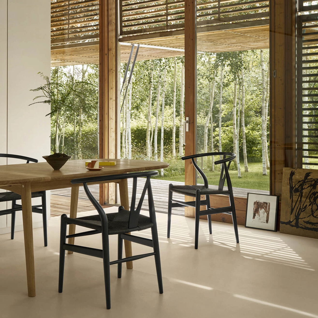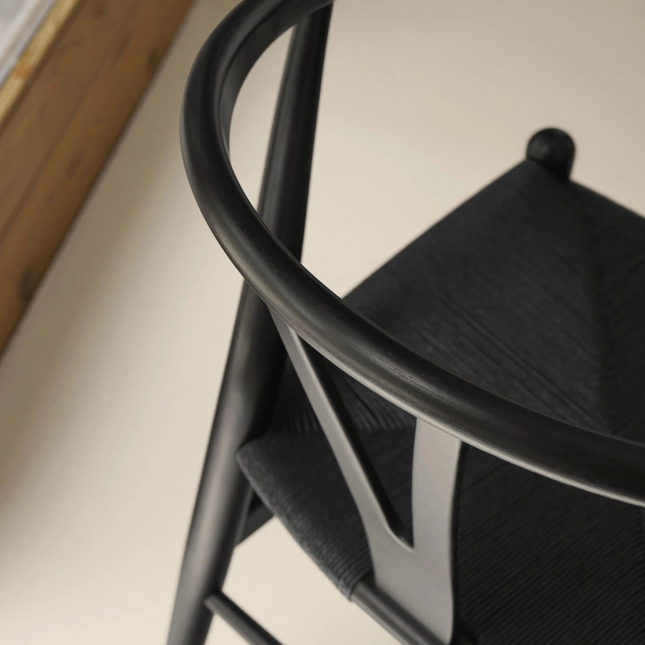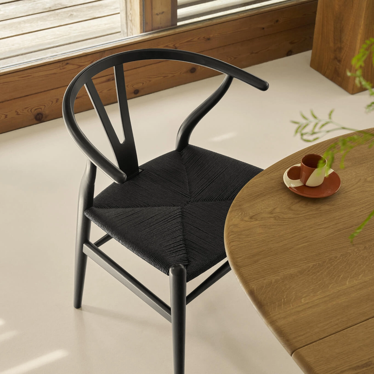 Découvrez ici la célèbre chaise Wishbone de Hans J. Wegner dans une édition limitée en eucalyptus noir et corde noire.