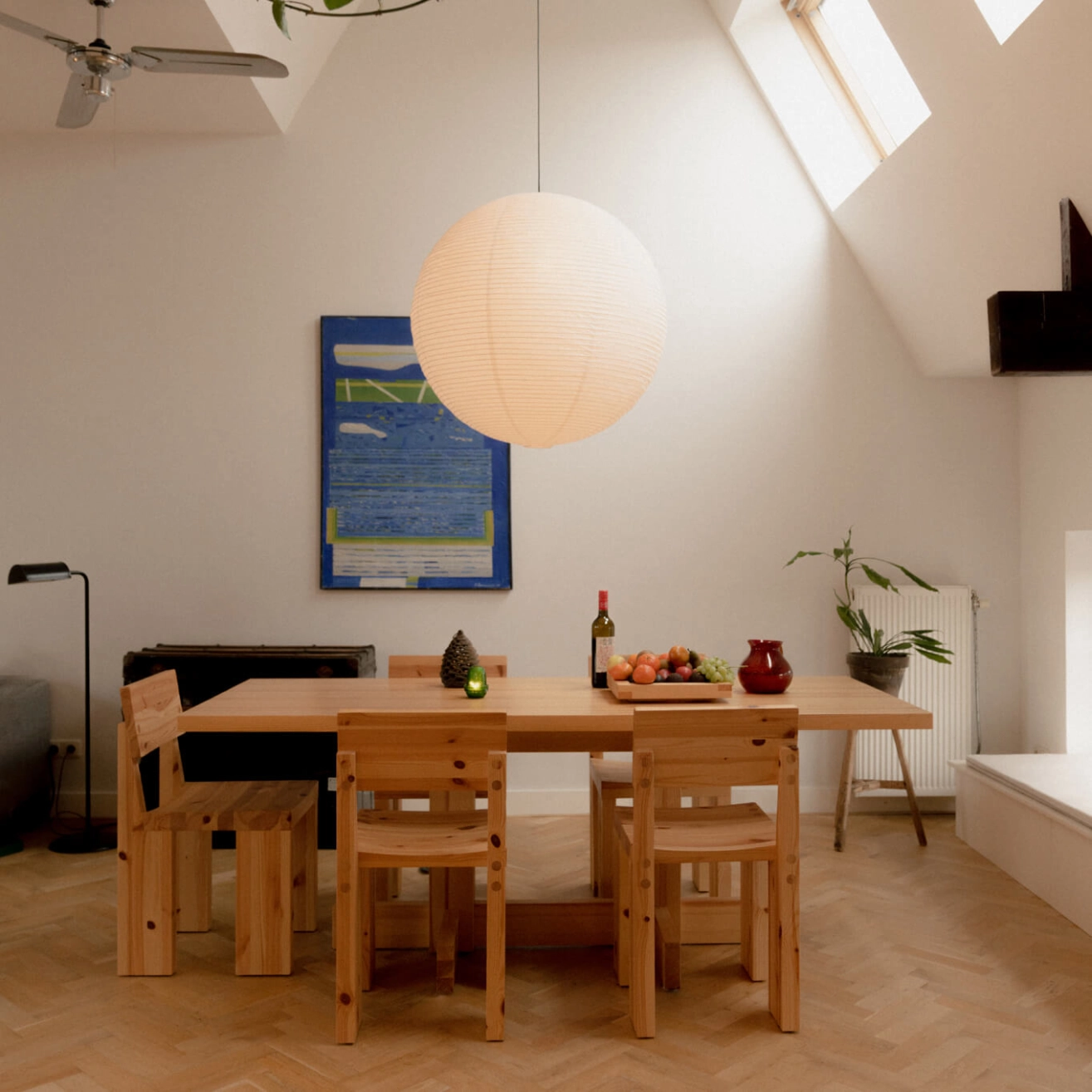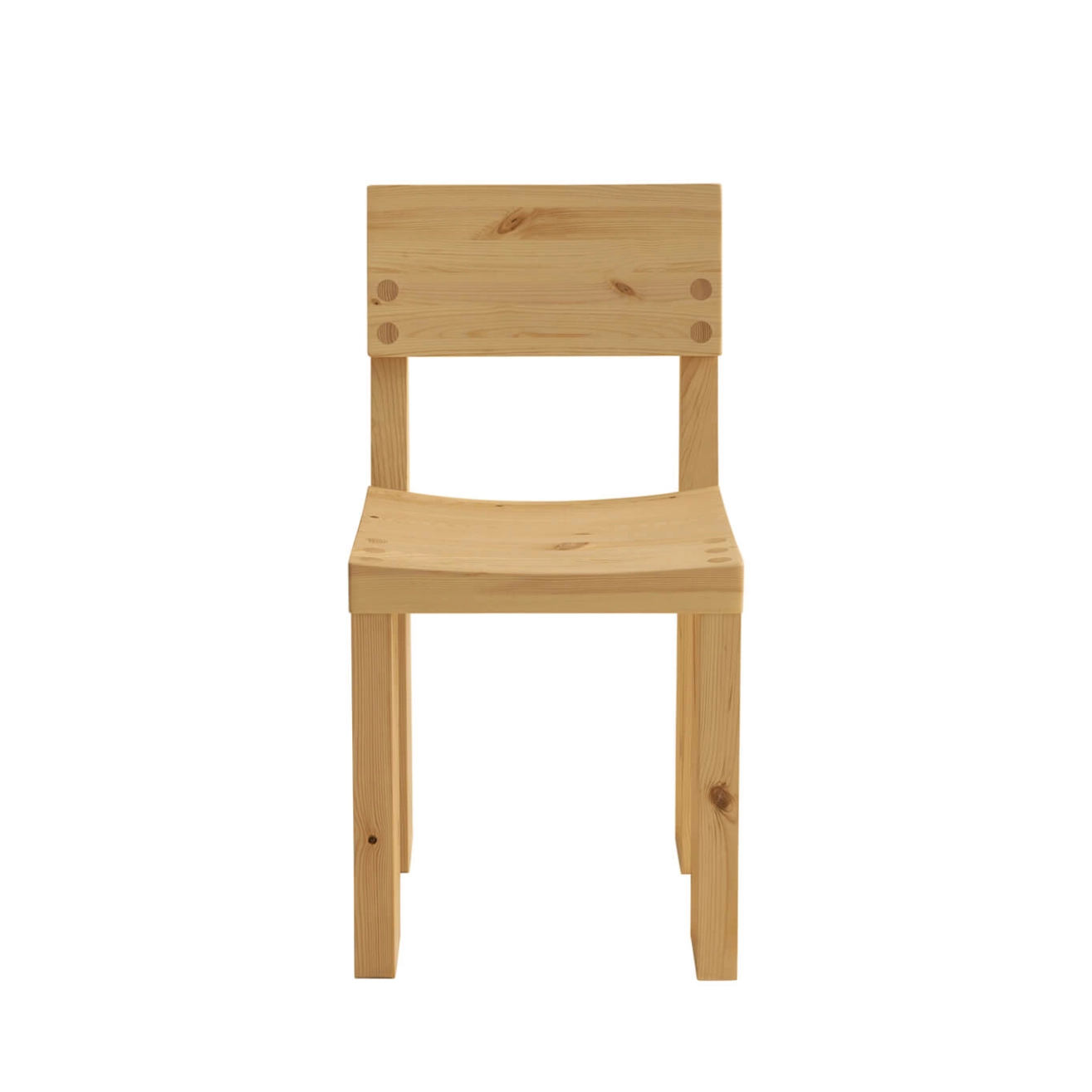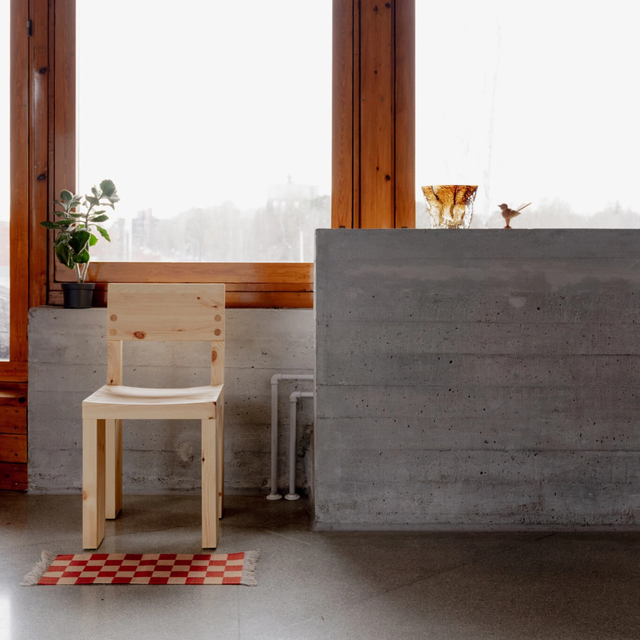 Avec sa silhouette imposante et son caractère affirmé, la chaise 001 de Vaarnii ne passe pas inaperçue. Fredrik Paulsen signe ici une pièce au design robuste, presque sculptural, sans pour autant négliger le confort. Pensée pour les repas qui s’éternisent, la chaise 001 offre une assise accueillante et stable. Le pin finlandais, matériau fétiche du designer, dévoile toute sa richesse graphique à travers les larges surfaces de bois, mettant en valeur ses nuances et son grain vivant. Cette esthétique brute et maîtrisée de la chaise 001 de Vaarnii traduit parfaitement la vision de Paulsen.