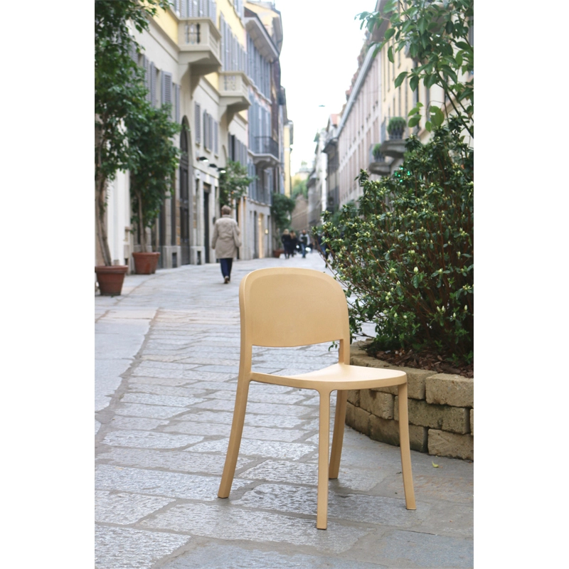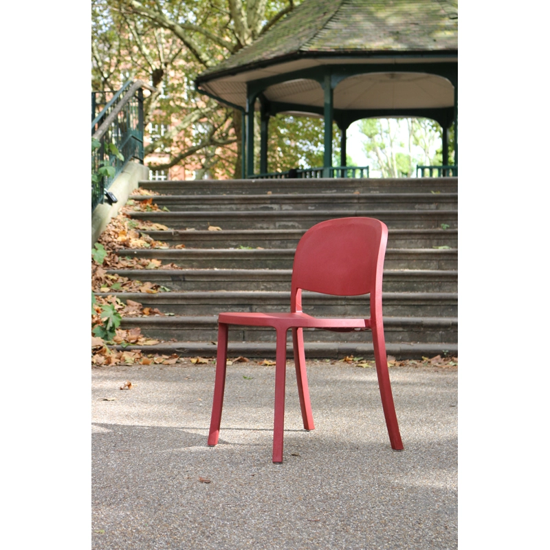 Dessinée par Jasper Morrison pour Emeco, la chaise 1 Inch Reclaimed se démarque par une forme simple, l’uniformité raffinée d’un matériau unique, un confort parfait et une grâce discrète. Fabriquée à 90% de déchets industriels, dont 75% de polypropylène et 15% de fibres de bois, 1 Inch Reclaimed combine avec élégance un design intemporel et des matériaux durables. Cette chaise empilable monobloc répond à une utilisation fréquente aussi bien en intérieur qu’à l’extérieur.