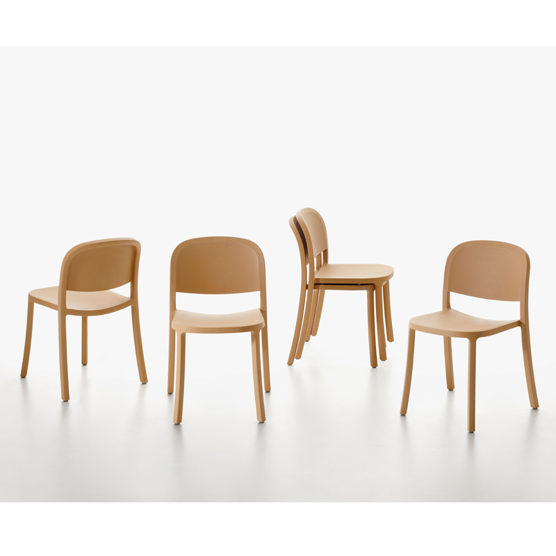 Dessinée par Jasper Morrison pour Emeco, la chaise 1 Inch Reclaimed se démarque par une forme simple, l’uniformité raffinée d’un matériau unique, un confort parfait et une grâce discrète. Fabriquée à 90% de déchets industriels, dont 75% de polypropylène et 15% de fibres de bois, 1 Inch Reclaimed combine avec élégance un design intemporel et des matériaux durables. Cette chaise empilable monobloc répond à une utilisation fréquente aussi bien en intérieur qu’à l’extérieur.