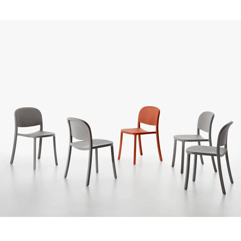 Dessinée par Jasper Morrison pour Emeco, la chaise 1 Inch Reclaimed se démarque par une forme simple, l’uniformité raffinée d’un matériau unique, un confort parfait et une grâce discrète. Fabriquée à 90% de déchets industriels, dont 75% de polypropylène et 15% de fibres de bois, 1 Inch Reclaimed combine avec élégance un design intemporel et des matériaux durables. Cette chaise empilable monobloc répond à une utilisation fréquente aussi bien en intérieur qu’à l’extérieur.