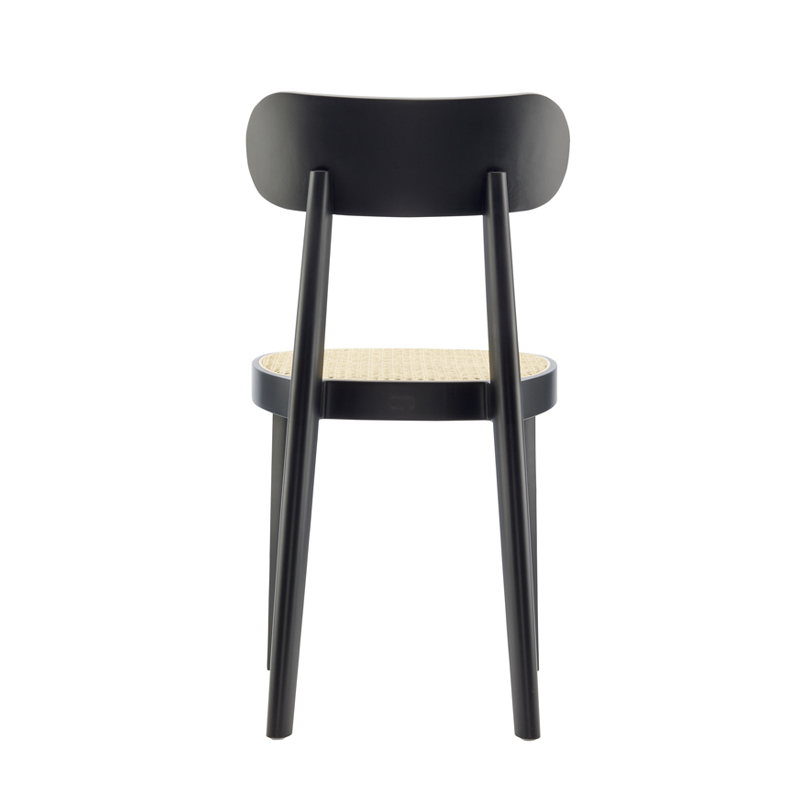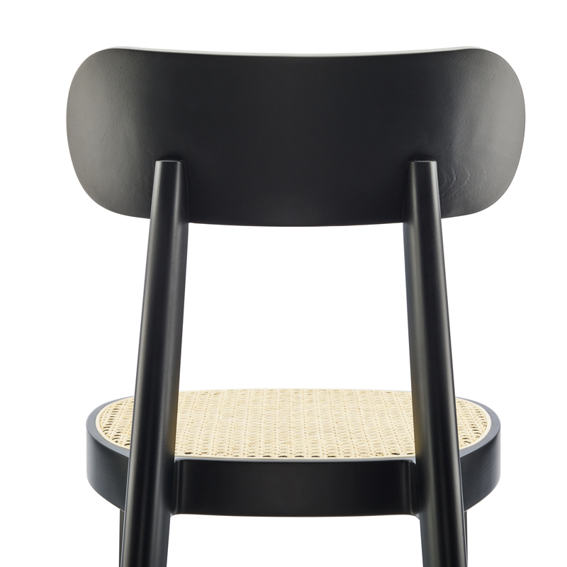 Avec la chaise 118, le designer Sebastian Herkner rend hommage à l’héritage Thonet, en reprenant les codes de la chaise 214 par la forme de son cadre d'assise incurvé . Le siège, fini à la main, est également recouvert de l'iconique cannage de Vienne. Une autre source d'inspiration pour Sebastien Herkner était la "Frankfurter Stuhl", développée dans les années 1930 et utilisée pendant longtemps comme chaise universelle. Hernker aime faire référence à son nouveau design pour Thonet la "chaise Offenbach" en référence à sa ville natale. Au milieu du XIXe siècle, Michael Thonet révolutionne la conception de la chaise en réduisant à un minimum les éléments qui la composent. Légère, sobre et subtile, cette chaise réinterprète un grand classique et s’associe avec subtilité à de nombreux modèles de table. Le designer Sebastian Herkner perfectionne cette idée et ajoute des détails raffinés, qui rendent la chaise moins imposante et encore plus belle. La forme des pieds de la chaise 118 Thonet est ainsi particulière : leur arrondi à l’arrière est brisé par des arêtes courbes sur le devant, créant des lignes qui reprennent la forme en fer à cheval de l’assise. La chaise avec une assise en auge 118M comprend un dossier et une assise en contreplacage moulé, soutenus par un cadre en bois de hêtre massif. Sa particularité réside aussi dans l’allure de son assise fer à cheval, reprise par ses pieds dans des lignes plus discrètes. Minimaliste et authentique, mais aussi élégante et filigrane, la chaise 118 de Thonet donne une élégance subtile à toutes les tables de repas, dans tous les restaurants. On imagine tout aussi bien la chaise 118 Thonet autour d'une table de repas dans une salle à manger ou une cuisine.