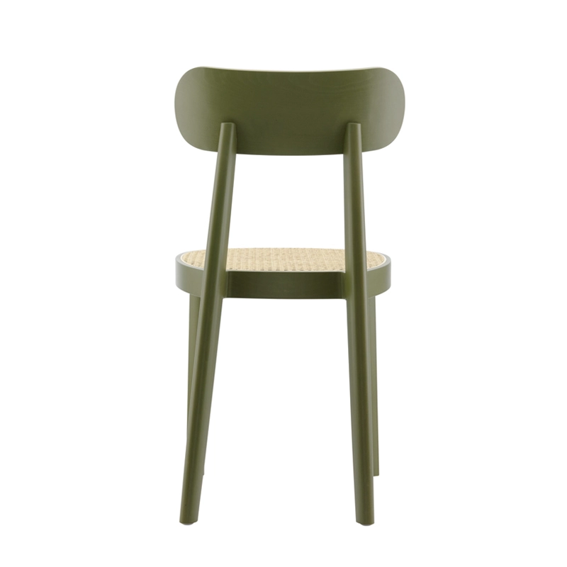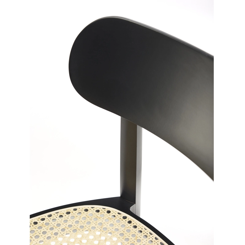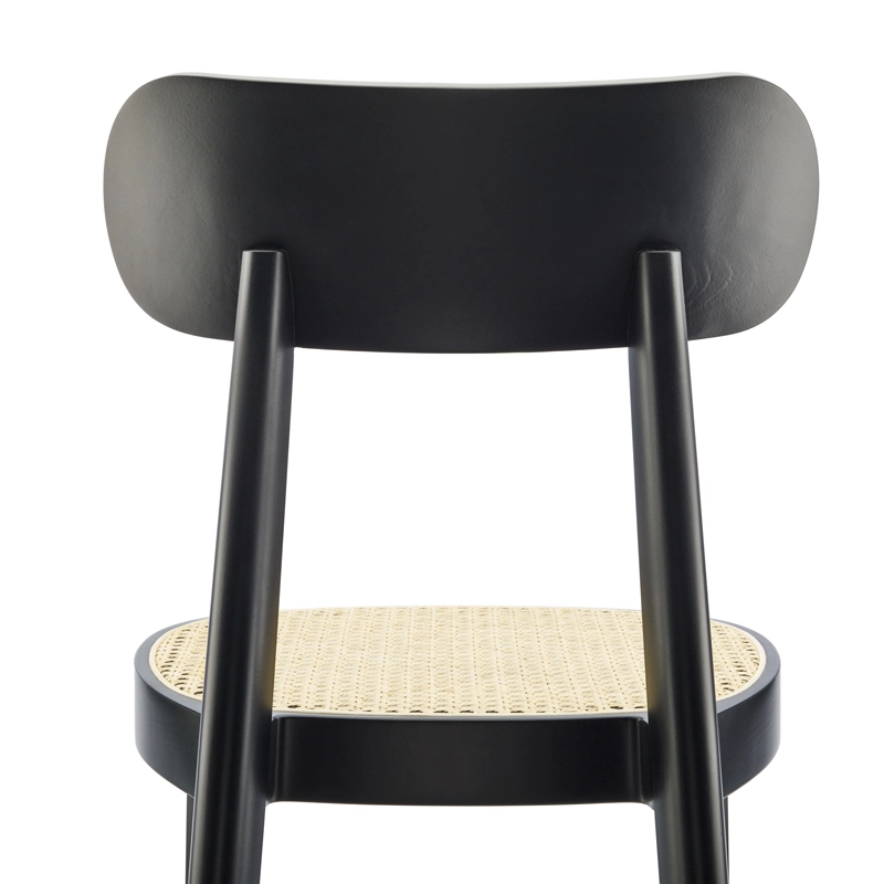 Thonet, en reprenant les codes de la chaise 214 par la forme de son cadre d'assise incurvé . Le siège, fini à la main, est également recouvert de l'iconique cannage de Vienne. Une autre source d'inspiration pour