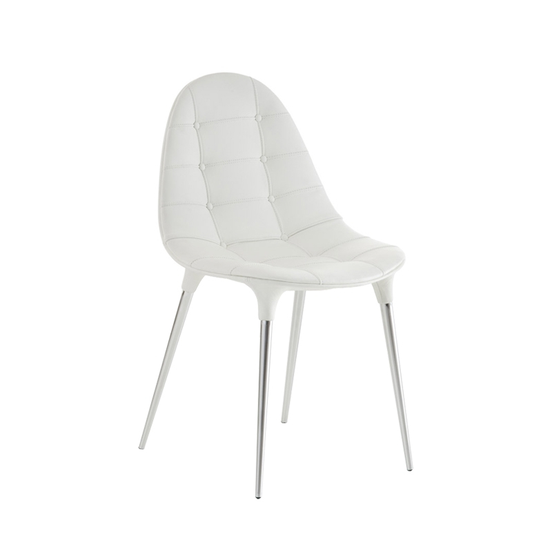 cuir matelassé, coque nylon brillant, pieds acier chromé