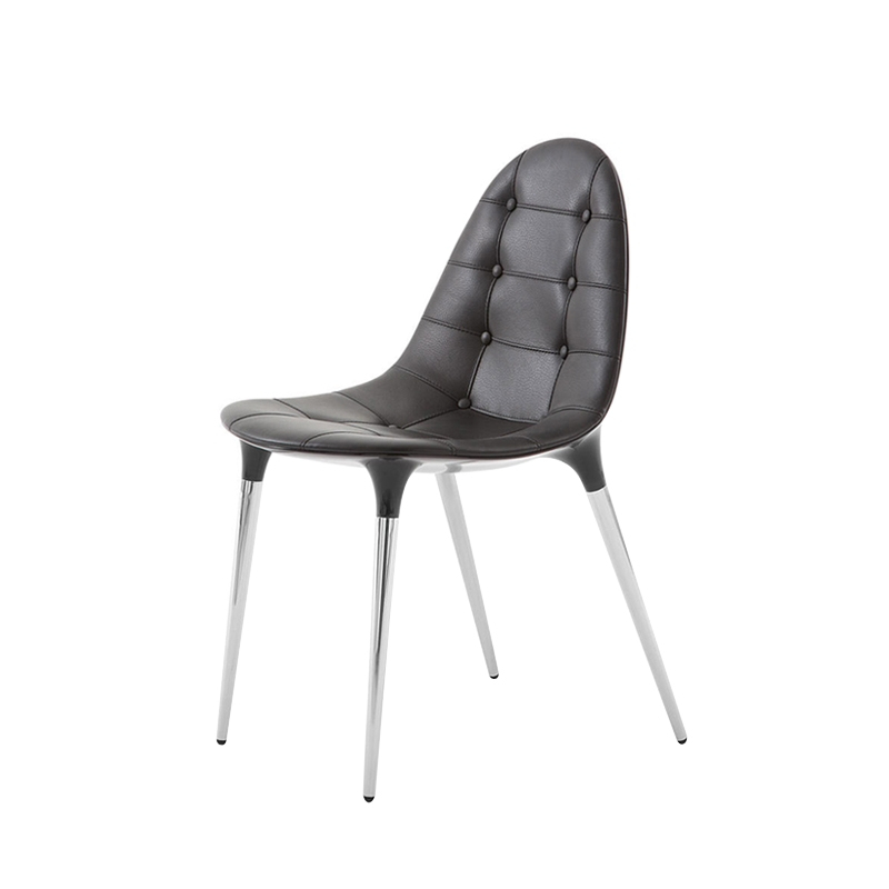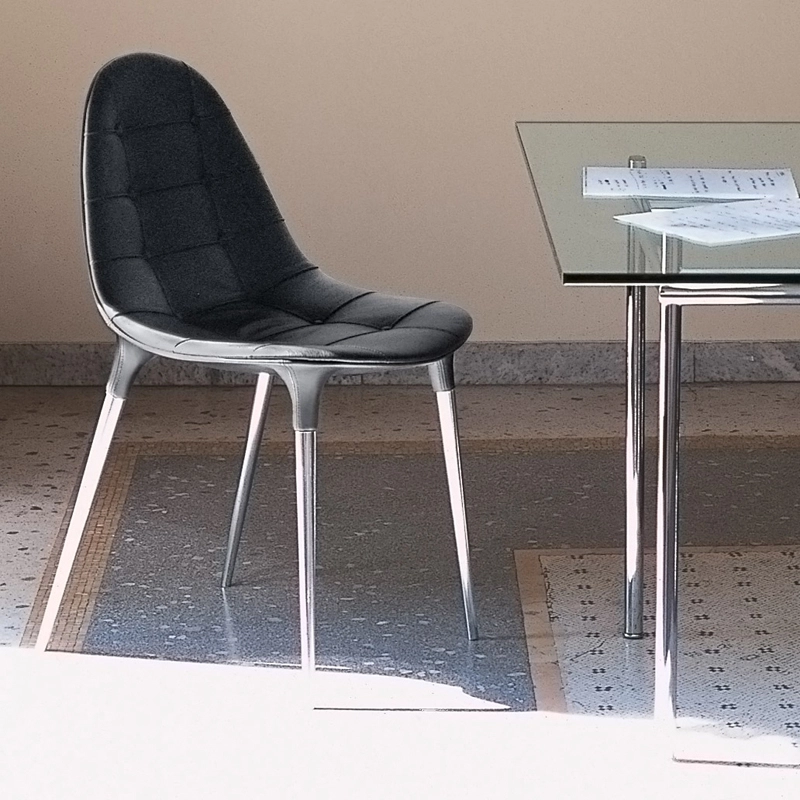 cuir matelassé, coque nylon brillant, pieds acier chromé