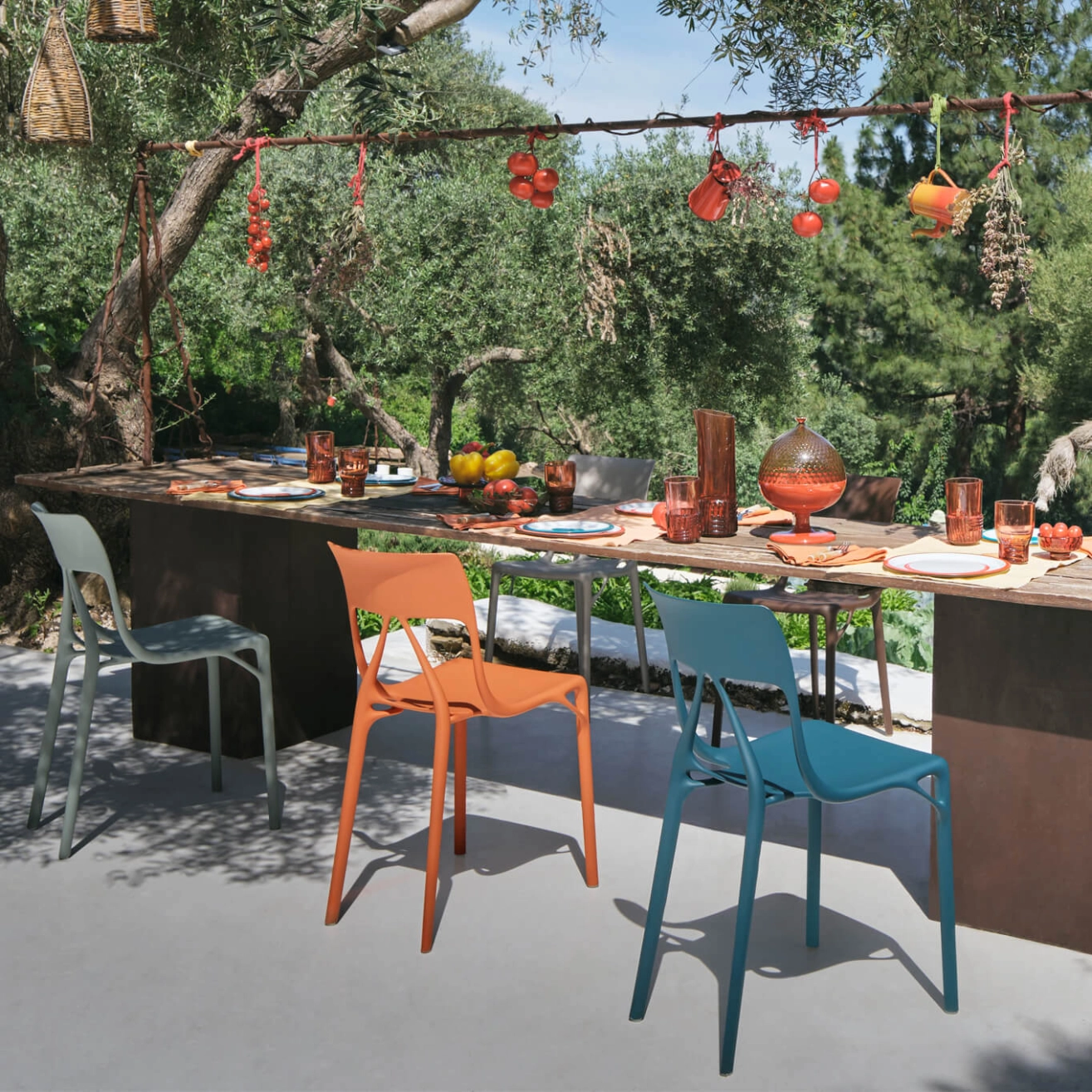 Né à Paris en 1949, il fait partie des designers actuels les plus originaux et prolifiques. Philippe Starck est devenu un monstre sacré et consacré du design international. Les chaises et fauteuils de Philippe Starck incarnent un design iconique, audacieux et intemporel, mêlant innovation, confort et élégance dans chaque création. Se proclamant autodidacte après un passage à l’école Camondo, il est déjà chef d’entreprise avant même sa majorité. Touche à tout inspiré, il n’hésite pas à revisiter les styles et les icones du passé. S’il œuvre régulièrement dans l’univers du luxe, on lui doit aussi d’avoir su démocratiser le design. Ses collaborations industrielles sont multiples et soutenues, tout particulièrement dans le mobilier que ce soit chez Cassina, Driade ou Kartell. Chez ce dernier, le bridge Mademoiselle allie l’aérienne structure en polycarbonate à une confortable assise en polyuréthane houssé de tissus emblématiques de différents stylistes italiens (Missoni, D&G ou Valentino). Il remporte des prix importants comme le Grand Prix National de la Création industrielle et l’Honor Award de l’American Institute of Architects. Philippe Starck se dépeint comme « un architecte japonais, un scénographe américain, un designer industriel allemand, un directeur artistique français, un designer de meubles italien ». Il collabore également avec des éditeurs de luminaires et d’accessoires d’art de la table tels que Baccarat ou Flos avec la collection KTribe.