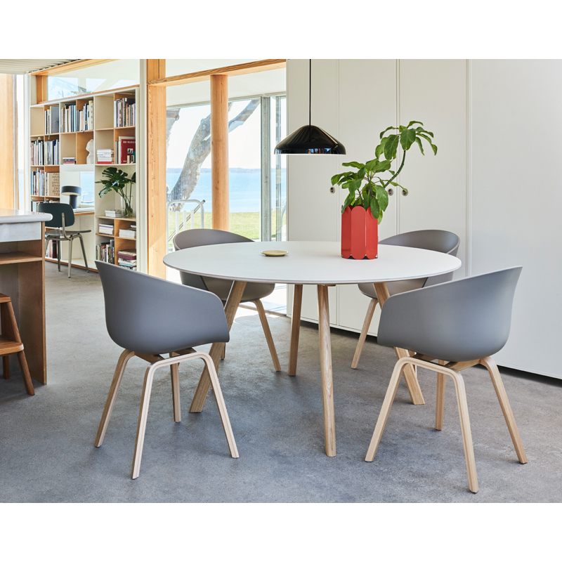 L'idée derrière la collection About A Chair, dessinée par Hee Welling, est de développer une chaise dotée d'une simplicité évidente. Un design sobre et épuré pour cette chaise qui fonctionne aussi bien autour d'une table de salle à manger qu'une table de conférence, dans une cantine ou dans un bureau. L'ambition du designer est de combiner à la fois la forme, la fonction, le détail et l'esthétique. La maison danoise Hay édite cette collection qui présente une large gamme de couleurs et de structures. Ici, la coque en polypropylène repose sur un piètement en bois. Disponible en version chaise ou petit fauteuil, About A Chair assure un confort optimal grâce à sa coque enveloppante à la forme ergonomique. Une chaise qui symbolise parfaitement la pureté, la sobriété et le style intemporel du design scandinave.