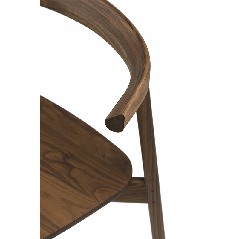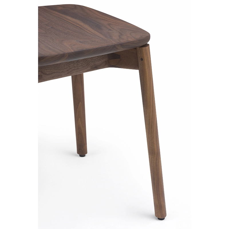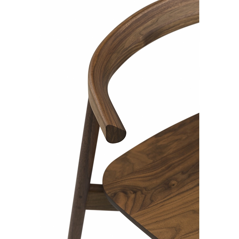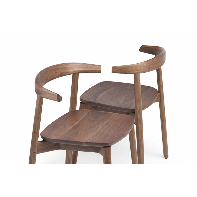 La chaise Ando de De La Espada est une conception utilitaire, robuste et silencieuse avec de beaux détails. C'est une chaise de salle à manger relativement compacte avec de la force et de la personnalité tout en restant sobre. Le dos de la chaise Ando est composé de plusieurs pièces de bois, jointes et sculptées, mettant en valeur les variations naturelles du grain du matériau.