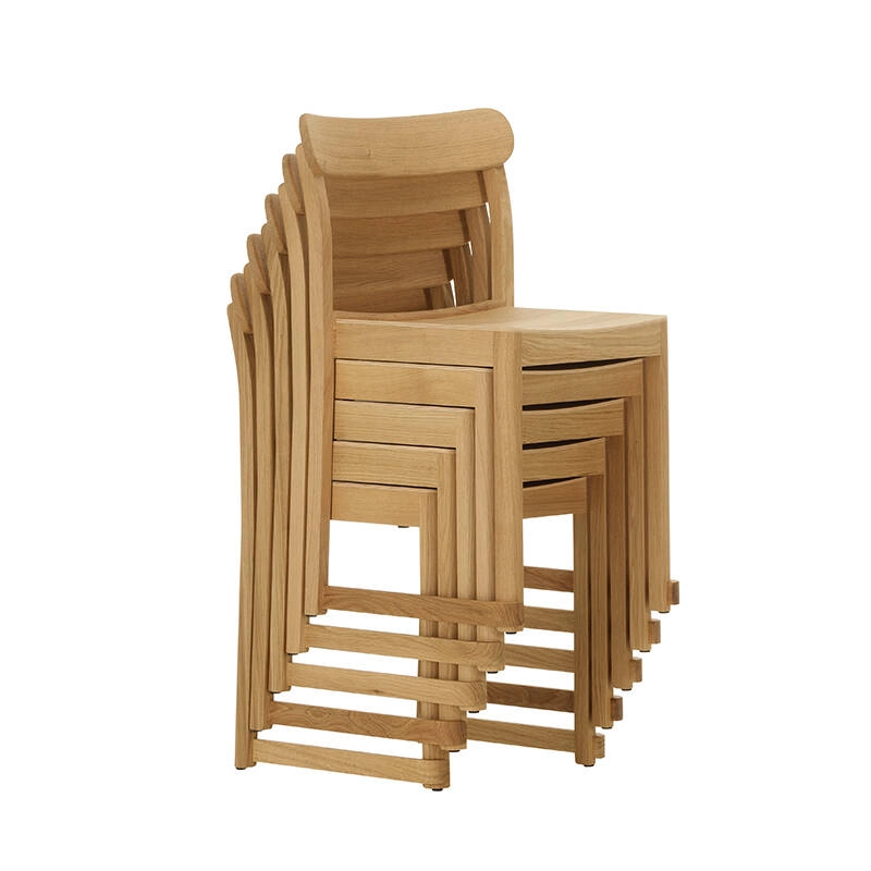 Chaise universelle en bois, Atelier Chair a été conçue pour le nouveau restaurant du National museum de Stockholm, qui évoque un atelier d'artiste. Commandée par le musée dans le cadre d'une initiative visant à favoriser le design nordique contemporain, la chaise Atelier est compacte, légère et empilable. Ses proportions élancées et ses lignes géométriques créent une esthétique saisissante. Simple et directe, la chaise possède des détails élégants, tels que les barres de liaison qui épousent les pieds avant. Editée par Artek, la chaise confortable et polyvalente convient aussi bien pour un bureau, une table à manger, une salle de réunion, un restaurant ou dans un auditorium. La chaise Atelier est conçue par le studio TAF Studio basé à Stockholm.