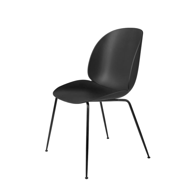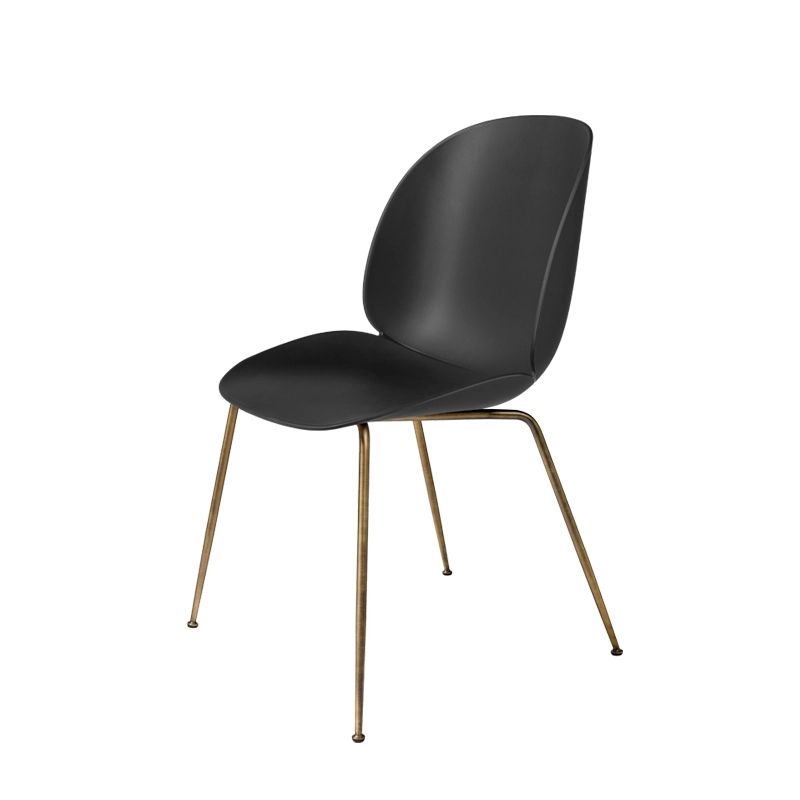 Pour la collection Beetle, la danoise Stine Gam et l’italien Enrico Fratesti se sont inspirés du scarabée, en étudiant l’anatomie, l’esthétique et le mouvement de l’insecte. La chaise Beetle a rencontré son public dès son introduction en 2013 et est devenue depuis le plus grand succès commercial de Gubi. Ainsi la collection réinterprète les éléments caractéristiques du scarabée que ce soit par la forme, les jointures, l’aspect rigide à l’extérieur et souple à l’intérieur.  La chaise Beetle est un mélange entre le design classique italien et les traditions scandinaves. Les créations du studio jouent souvent ave l’héritage du design classique danois, mais aussi avec la nature et plus particulièrement le monde des insectes, puisque la Beetle leur a été inspirée par la carapace des scarabées. Désormais disponible en version non rembourrée, la chaise Beetle est devenue une collection aux possibilités illimitées. Sa coque en plastique lui donne une allure plus légère tout en étant très robuste et plus accessible. Sa texture matte, qui lui donne un côté très tactile, est combinée à une qualité d’assise exceptionnelle. L’assise et le dossier sont donc constitués de deux coques aux lignes incurvées qui reproduisent la carapace de l’insecte. Les pattes de l’animal sont représentées par les pieds fins et fuselés en acier laiton. Les différents éléments de la chaise Beetle sont liés et travaillés d’une manière fluide. Grâce aux multiples couleurs de coques et finitions de piètements disponibles, la chaise Beetle non rembourrée de Gubi s’intègre dans tous types d’espaces, que ce soit à la maison autour d’une table de repas que dans des environnements collectifs. Son design attrayant, son confort exceptionnel et ses vastes possibilités de personnalisation ont séduit les particulier et les architectes d’intérieur et l’on peut la voir aujourd’hui dans de nombreux restaurants parmi les plus renommés du monde.