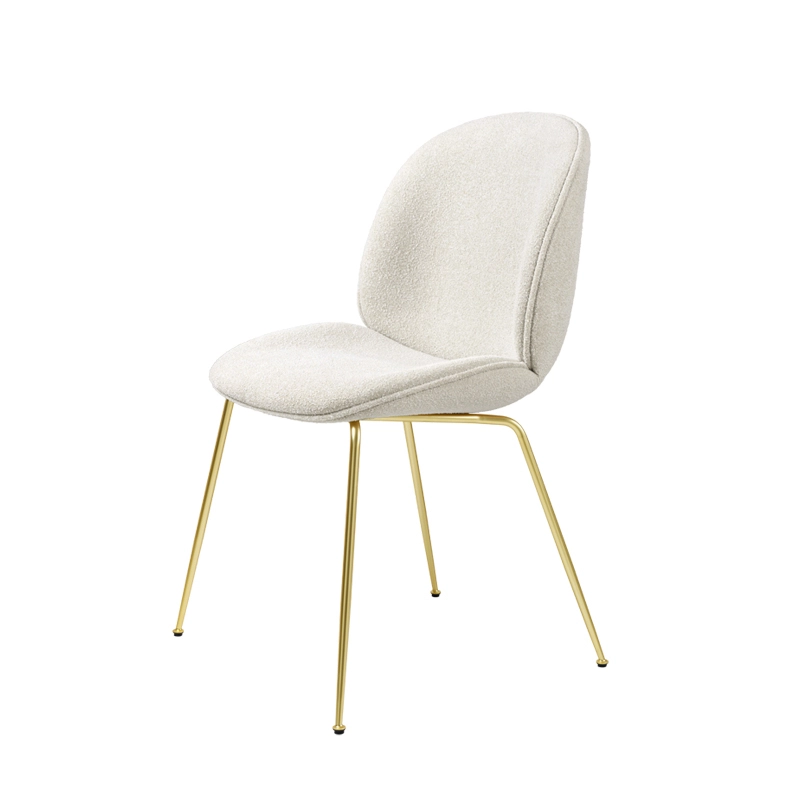 Beetle est une série de chaises éditées par Gubi et inspirées par la forme du scarabée. Le siège et le dossier sont réalisés en contreplaqué moulé, recouverts de tissu et rembourrés pour assurer un confort optimal. Les pieds, de forme légèrement conique, sont en acier recouvert à l'époxy noir ou en laiton. L'élégance de la forme du siège Beetle est soulignée par un passepoil en cuir. Les créations du studio GamFratesi incarnent l'union du design italien avec la sobriété danoise. Les contrastes sont souvent la clé de l'inspiration de ce duo qui travaille avec une approche artisanale purement scandinave, simple et fonctionnelle, mais toujours avec un concept et une histoire forte, intégrés dans chacune de leur création.