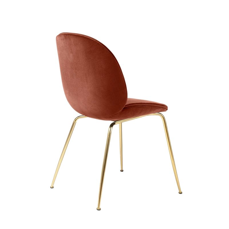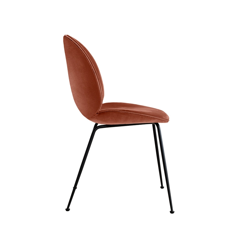 Pour la collection Beetle, les designers Stine Gam et Enrico Fratesi se sont inspirés du scarabée, en étudiant l’anatomie, l’esthétique et le mouvement de l’insecte. La chaise Beetle a rencontré son public dès son introduction en 2013 et est devenue depuis le plus grand succès commercial de la maison danoise Gubi. Ainsi la collection réinterprète les éléments caractéristiques du scarabée que ce soit par la forme, les jointures, l’aspect rigide à l’extérieur et souple à l’intérieur. La chaise Beetle est un mélange entre le design classique italien et les traditions scandinaves. Les créations du studio jouent souvent avec l’héritage du design classique danois, mais aussi avec la nature et plus particulièrement le monde des insectes, puisque la Beetle leur a été inspirée par la carapace des scarabées. Pour cette version, la chaise Beetle est recouverte d’un luxueux velours associé à d’élégants pieds, de formes légèrement coniques, en acier recouverts à l’époxy noir ou en laiton. Soyeux, velouté et chaleureux, ce tissu incarne un esprit raffiné et glamour. Le siège et le dossier sont réalisés en contreplaqué moulé, recouverts de tissu et rembourrés pour assurer un confort optimal. L'élégance de la forme du siège Beetle est soulignée par un passepoil en cuir qui souligne les contours de l’assise et du dossier. Gubi propose plusieurs coloris intenses et vibrants de la chaise Beetle en velours, afin d’apporter un côté convivial et cosy aux intérieurs. Les créations du studio GamFratesi incarnent l'union du design italien avec la sobriété danoise. Les contrastes sont souvent la clé de l'inspiration de ce duo qui travaille avec une approche artisanale purement scandinave, simple et fonctionnelle, mais toujours avec un concept et une histoire forte, intégrés dans chacune de leur création. Ultra confortable, la chaise Beetle en velours trouve sa place dans différents environnements : autour d’une table de repas, devant un bureau, à la maison ou sur le lieu de travail. Son design attrayant, son confort exceptionnel et ses vastes possibilités de personnalisation on séduit les particuliers et les architectes d’intérieur et l’on peut la voir aujourd’hui dans de nombreux restaurants parmi les plus renommés du monde.
