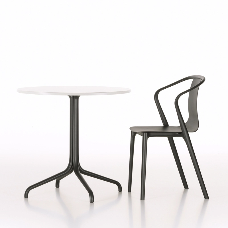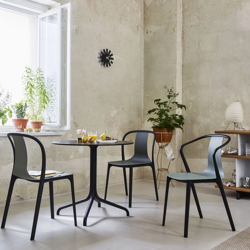 Inspirée par le mobilier de bistrot classique, la collection Belleville tient son nom du quartier parisien dans lequel se trouve le studio des designers Ronan et Erwan Bouroullec.  La série se compose de chaises et de tables contemporaines à l'allure dynamique et raffinée, tout en étant empreintes d'une certaine tradition. La chaise, disponible avec ou sans accoudoirs, est composée de deux éléments : une coque en polypropylène ou en contreplaqué, qui vient se fixer sur une structure porteuse en polyamide. Avec sa silhouette élancée et sa composition robuste, la chaise Belleville, éditée par Vitra, s'intègre aussi bien dans un espace domestique - une cuisine ou une salle à manger - , que dans un lieu public, comme un restaurant. La version plastique convient aussi à un usage extérieur.