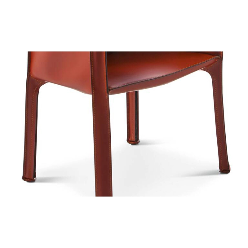 Conçu par Mario Bellini et édité par Cassina, le petit fauteuil Cab 413 incarne un nouveau standard dans le design du mobilier en cuir, souvent imité mais jamais égalé. Créé dans les années 70, Cab devenu une pièce emblématique de la collection "I Contemporanei" (les Contemporains) Cassina. Comme toutes les pièces de la collection Cab, le petit fauteuil Cab 413 est pionnièr en tant que première chaise au monde à présenter une structure autoportante en cuir, s'inspirant de la relation entre le squelette et la peau. Son revêtement se compose de 16 pièces de cuir, façonnées lors de 14 opérations manuelles. Ces pièces découpées sont minutieusement assemblées après un processus de biseautage visant à réduire l'épaisseur des zones à joindre. Ensuite, le revêtement est délicatement ajusté sur un armature en acier, fermé à l'aide de fermetures éclair, rappelant la finition d'une robe de tailleur. Aujourd'hui, la collection Cab Cassina par Mario Bellini évolue pour répondre aux besoins contemporains, tout en conservant la même qualité de travail du cuir.