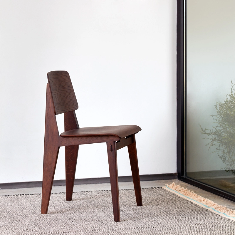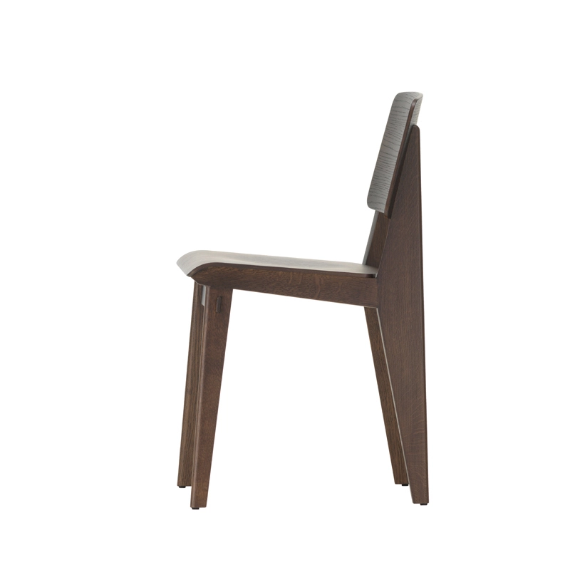 Vitra correspond à l'une des variantes de la création de Jean Prouvé de 1941, dont la construction ne nécessite aucune vis. La hauteur et la géométrie de l'assise sont les mêmes que celles de la chaise Standard et répondent donc aux normes et exigences actuelles. L'aspect et le toucher chaud du bois offrent un contraste intéressant avec la conception structurelle pratique, typique de l'approche fonctionnelle de Prouvé.