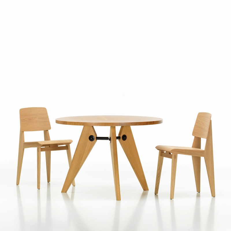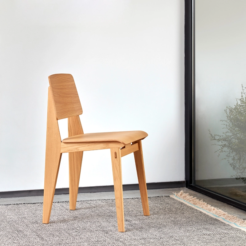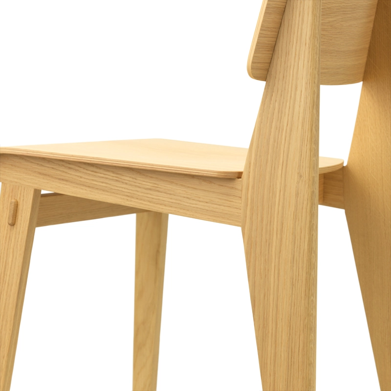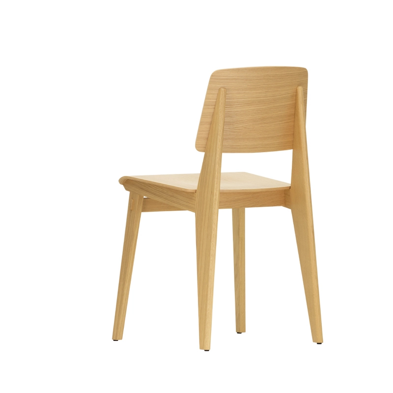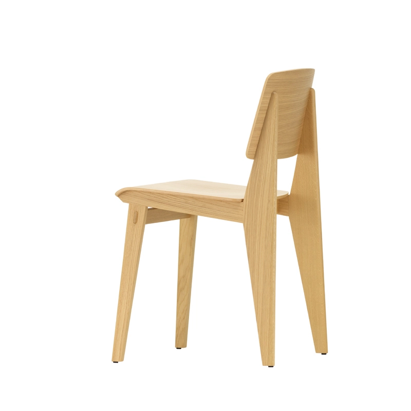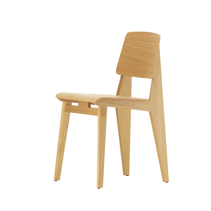 Vitra correspond à l'une des variantes de la création de Jean Prouvé de 1941, dont la construction ne nécessite aucune vis. La hauteur et la géométrie de l'assise sont les mêmes que celles de la chaise Standard et répondent donc aux normes et exigences actuelles. L'aspect et le toucher chaud du bois offrent un contraste intéressant avec la conception structurelle pratique, typique de l'approche fonctionnelle de Prouvé.