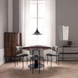 Gubi produit ainsi une chaise a la personnalité unique et accueillante qui s’intègre dans différents styles de lieux, que ce soit des ambiances épurées ou des univers imposants et raffinés.