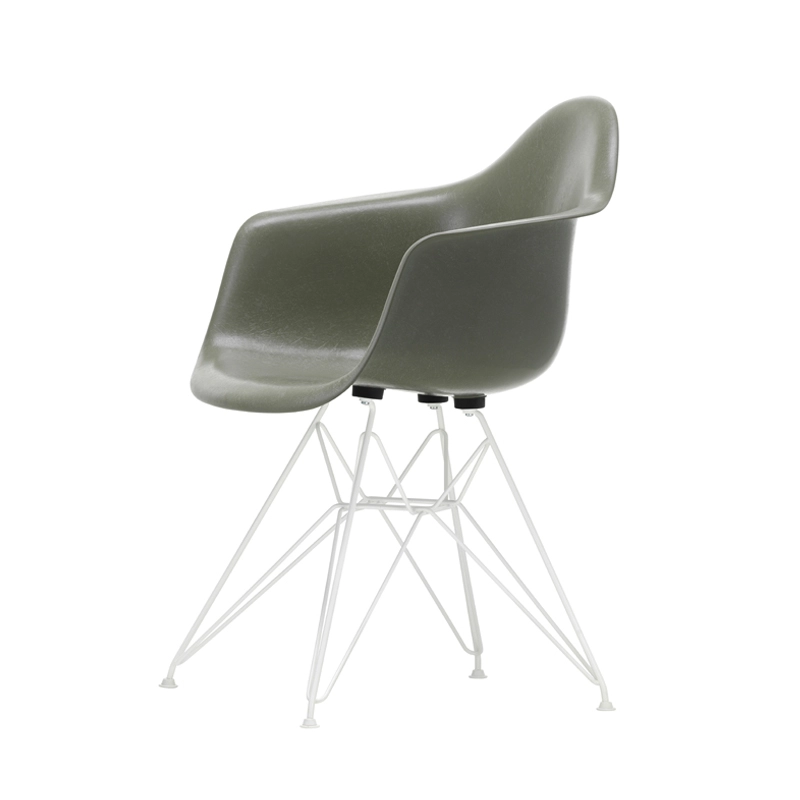 Rééditée par Vitra, la Eames Fiberglass Chair fait son grand retour dans ses couleurs d’origine. Dessinée par Charles et Ray Eames, la Eames Plastic Chair est l'une des créations mobilières les plus importantes et les plus connues du XXe siècle. En effet, son apparence vive la rend très prisée et fait d’elle un classique du mobilier design. La chaise DAR Fiberglass est issue d’un nouveau procédé de fabrication de Vitra permettant de fabriquer la coque d’assise dans ses couleurs d’origine et dans son premier matériau produit. La Eames Chair, éditée par Vitra, a constamment été améliorée et adaptée au cours de sa longue histoire de production. Lancée sur le marché en 1950, la chaise Eames fiberglass DAR de Vitra, fut la première chaise en plastique à être produite en série. La  chaise Eames Fiberglass DAR a également marqué l'introduction de la chaise multifonctionnelle dont la coque peut être combinée avec une variété de piètements – une idée alors révolutionnaire qui s'est depuis largement répandue. Les coques de la chaise Eames Fiberglass Vitra se démarquent par la surface irrégulière caractéristique de la fibre de verre qui apparaît presque comme un matériau naturel grâce à ses fibres bien visibles. Ses coques reposent sur la superbe structure à croisillons chromée Eiffel. Une fixation en caoutchouc est placée sous l’assise pour permettre un confort optimal. Les Fiberglass Chairs DAR Vitra forment une vaste famille qui offre d'innombrables variantes convenant à presque toutes les utilisations.