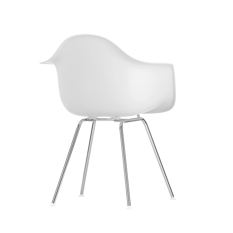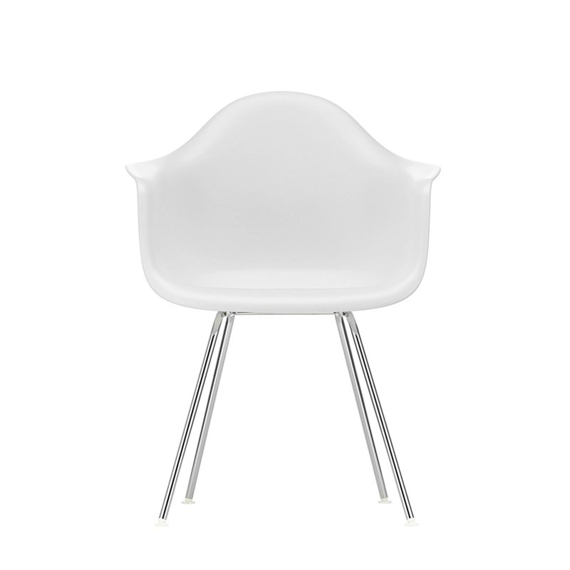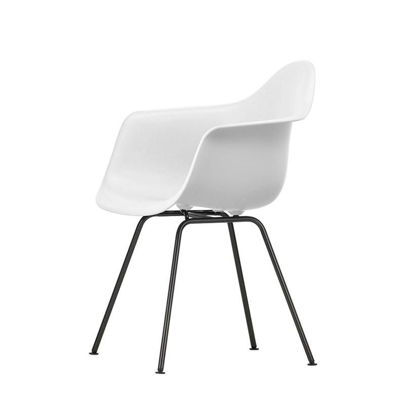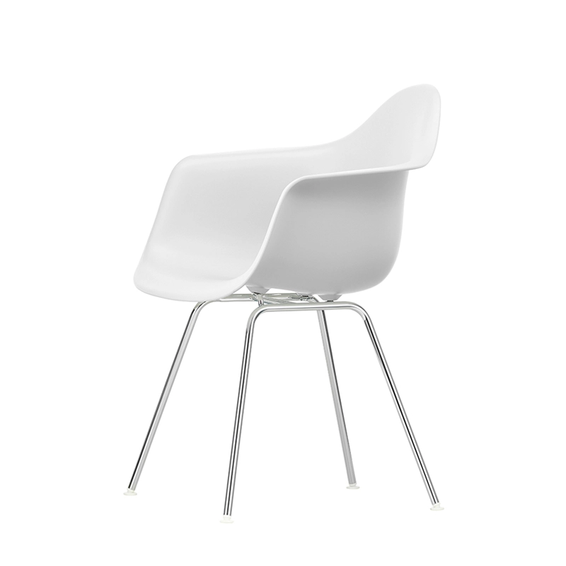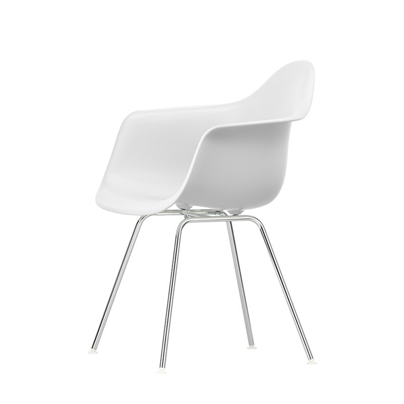 Les Plastic Armchairs dessinés par Charles et Ray Eames dans les années 50 ont été présentés pour la première fois dans le cadre du concours « Low Cost Furniture Design » organisé par le Museum of Modern Art de New York. La coque aux lignes organiques était à l'origine en fibre de verre. Rééditée par Vitra avec une coque en polypropylène, la Eames Plastic DAX (Dining Height Armchair X-Base) est dotée d'un piètement à quatre pieds en tube d'acier, à l'apparence discrète, disponible en finition époxy qui convient également aux utilisations extérieures. C'est un petit fauteuil qui s'adapte aussi bien aux espaces domestiques qu'aux environnements collectifs.