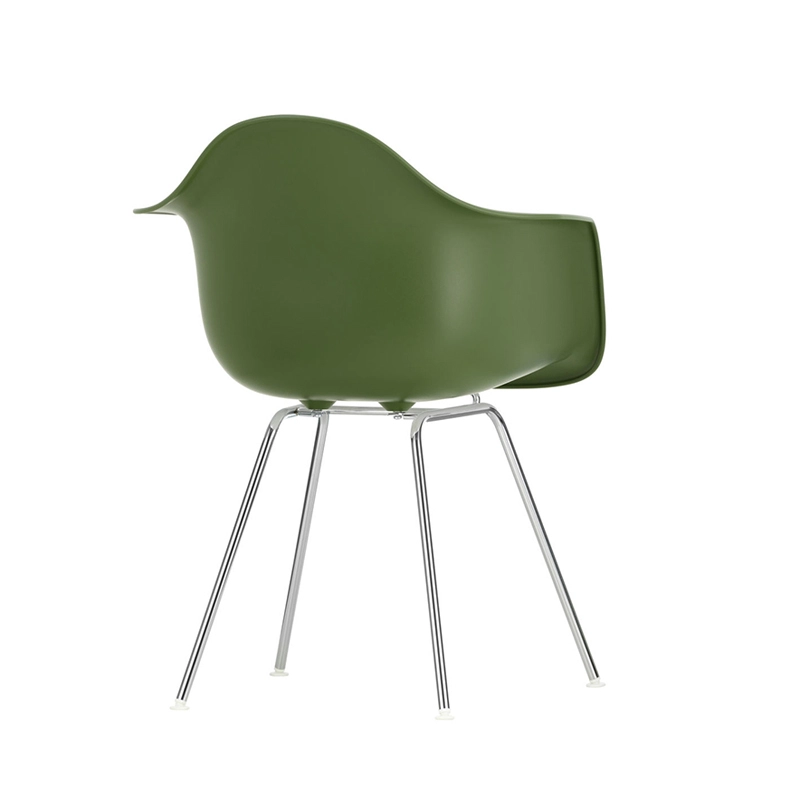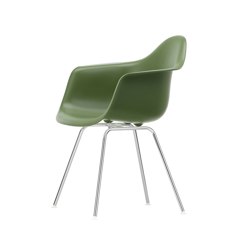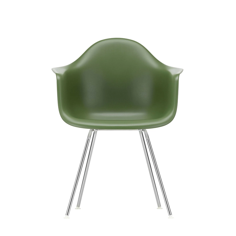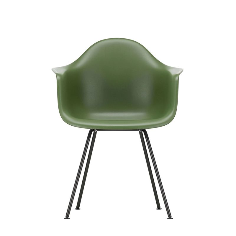 Les Plastic Armchairs dessinés par Charles et Ray Eames dans les années 50 ont été présentés pour la première fois dans le cadre du concours « Low Cost Furniture Design » organisé par le Museum of Modern Art de New York. La coque aux lignes organiques était à l'origine en fibre de verre. Rééditée par Vitra avec une coque en polypropylène, la Eames Plastic DAX (Dining Height Armchair X-Base) est dotée d'un piètement à quatre pieds en tube d'acier, à l'apparence discrète, disponible en finition époxy qui convient également aux utilisations extérieures. C'est un petit fauteuil qui s'adapte aussi bien aux espaces domestiques qu'aux environnements collectifs.