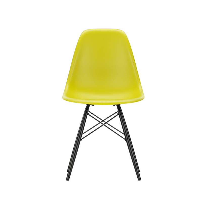 Eames Plastic Chair DSW (Dining Side chair Wooden base) est dotée d'un piétement à quatre pieds en érable teinté et laqué avec des croisillons en tubes d’acier. L’association du plastique et du bois confère à la création classique un aspect chaleureux et un charme décontracté. Avec le polypropylène moulé et la nouvelle version des modèles en fibre de verre,