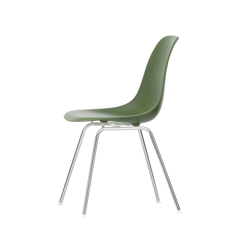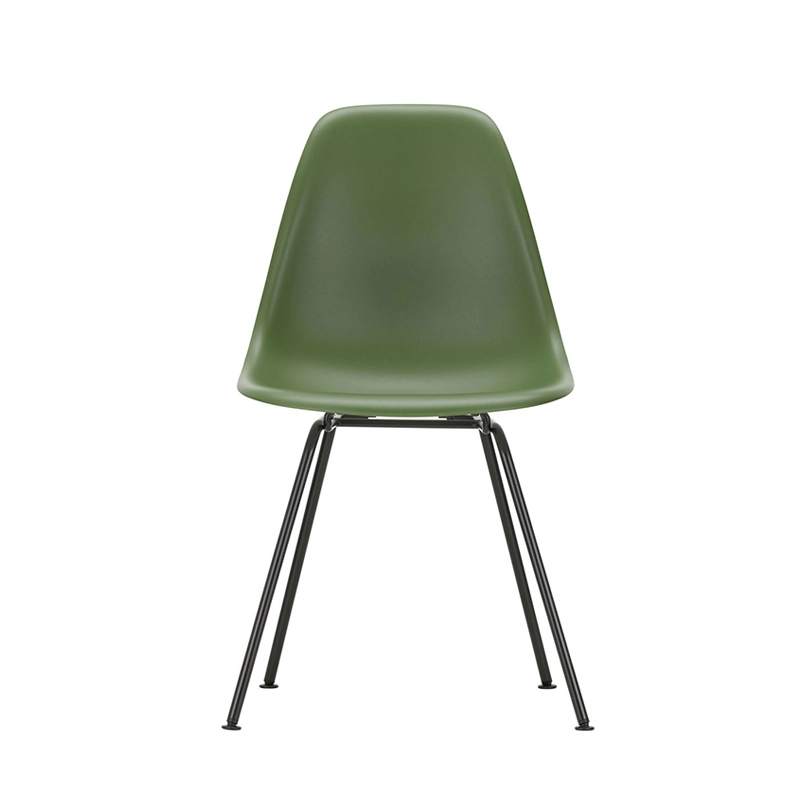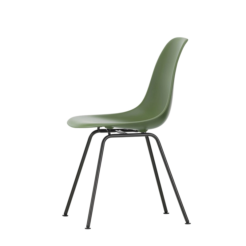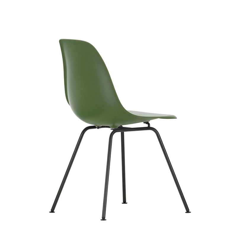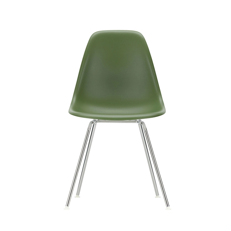Les Plastic Armchairs dessinés par Charles et Ray Eames dans les années 50 ont été présentés pour la première fois dans le cadre du concours « Low Cost Furniture Design » organisé par le Museum of Modern Art de New York. La coque aux lignes organiques était à l'origine en fibre de verre. Rééditée par Vitra avec une coque en polypropylène, La chaise DSX (Dining Height Side Chair X-Base) à l'esthétique sobre se définit par un piètement à quatre pieds en tube d'acier et une coque aux formes organiques disponible en une large palette de couleurs. Le piètement se décline en version chromée ou finition époxy noir qui est adapté aussi à une utilisation à l'extérieur. La chaise DSX s'adapte aussi bien aux espaces domestiques qu'aux environnements collectifs. En adoptant le polypropylène moulé, Vitra en a amélioré à la fois la robustesse, l'élasticité et le confort. À partir d'une unique forme de coque, la chaise est déclinée en trois grandes familles caractérisées par la forme du piètement : la chaise Eames DSR avec piètement Eiffel, la chaise Eames DSW avec piètement à croisillons de bois et la chaise Eames DSX à piètement tubulaire simple. Les chaises Eames DSXE sont disponibles en plusieurs couleurs, avec ou sans coussin d'assise ou rembourrage intérieur.